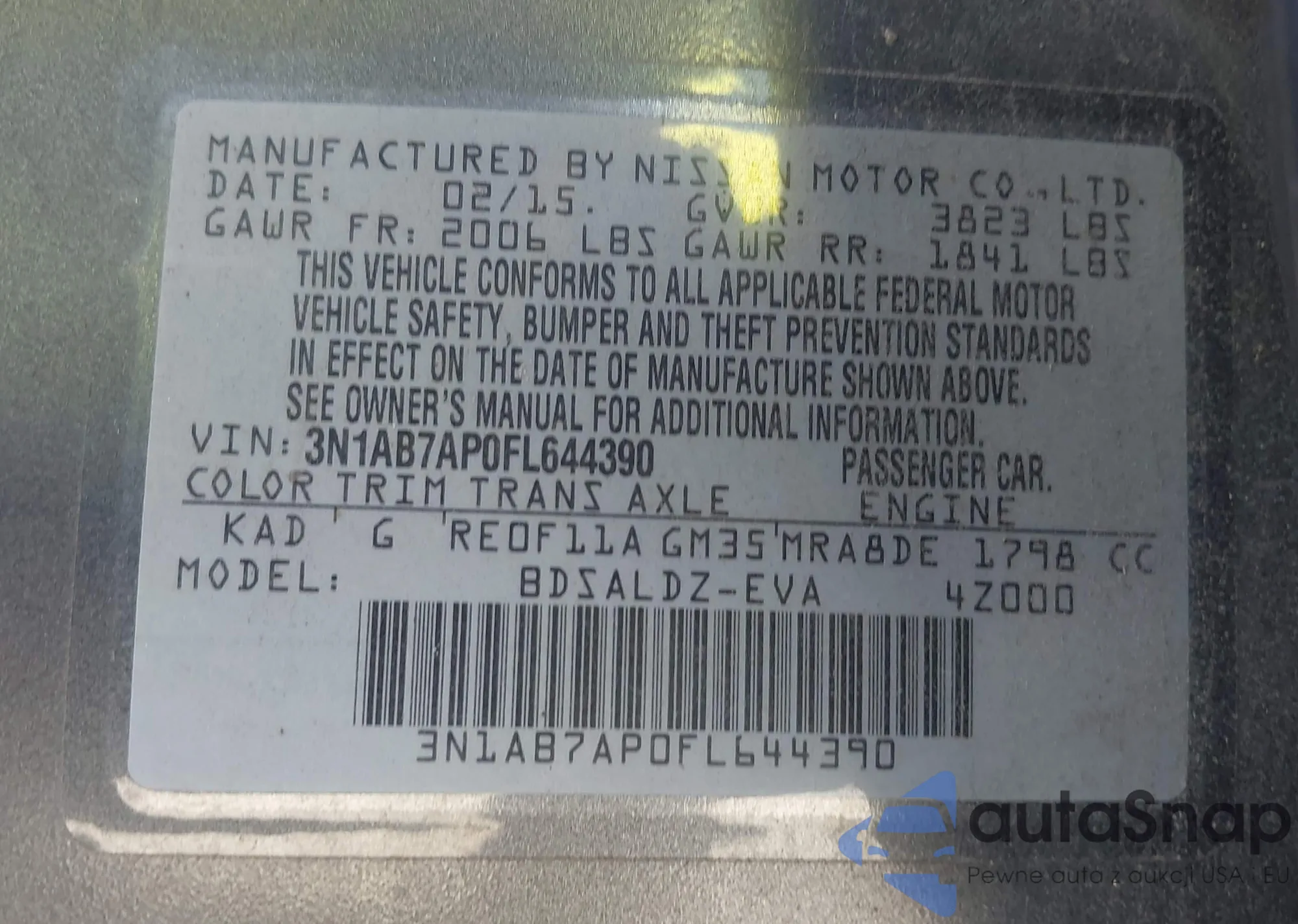 VIN: 3N1AB7AP0FL644390