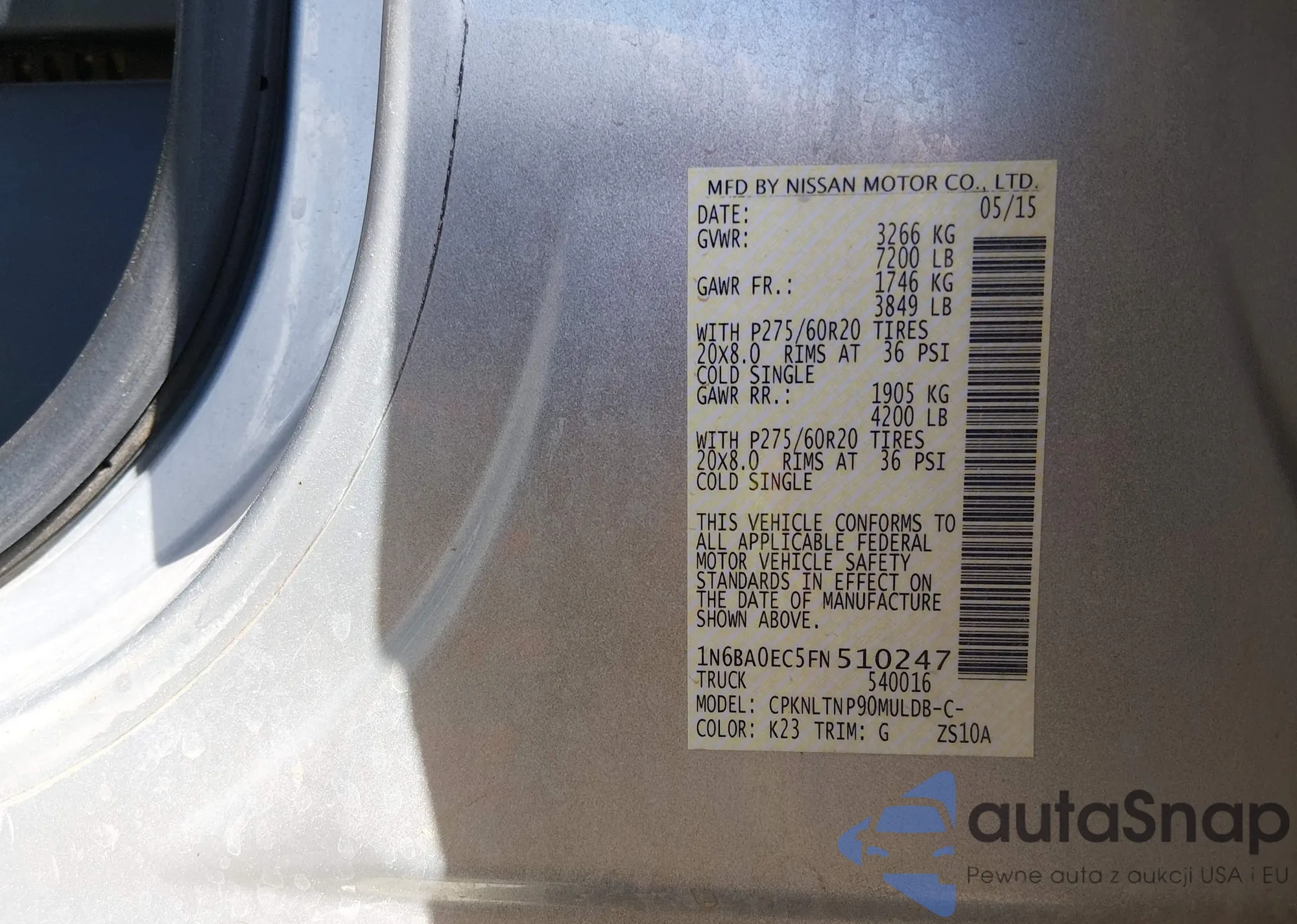 Samochód Nissan Titan 2015 (VIN 1N6BA0EC5FN510247) sprzedaje go niezweryfikowany sprzedawca. Zalecamy raport Carfax i potwierdzenie możliwości rejestracji pojazdu przed zakupem.