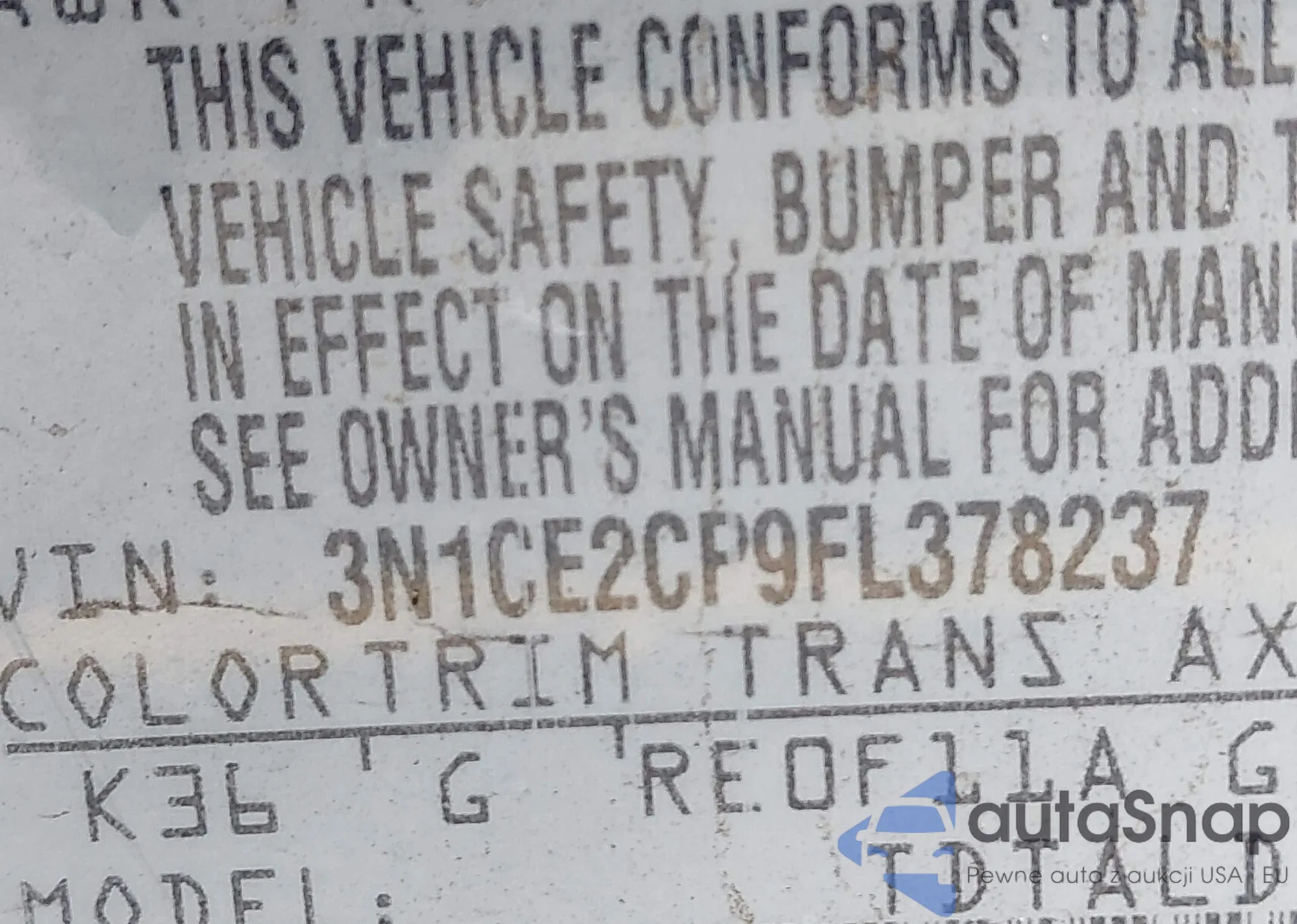 Samochód Nissan Versa 2015 (VIN 3N1CE2CP9FL378237) nie był wcześniej licytowany. Dokumenty są czyste, przebieg odpowiada lub jest niższy niż średnia rynku. Sprzedaje go firma ubezpieczeniowa – polecamy zakup. Dostawa do portu zajmie ok. 6–8 tygodni.