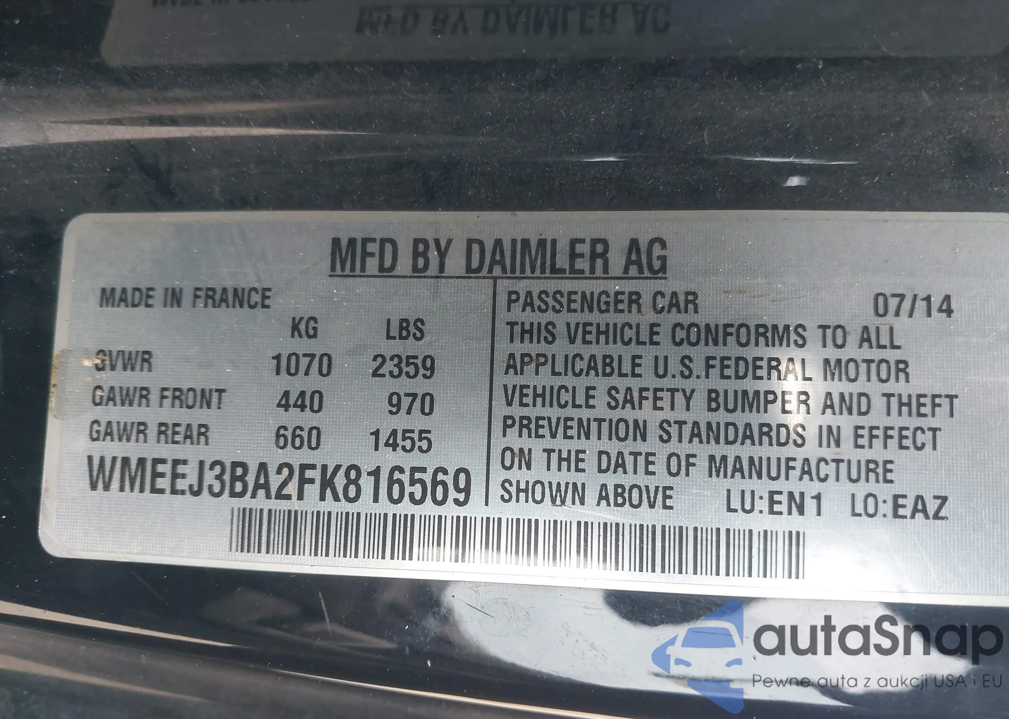 • VIN: WMEEJ3BA2FK816569