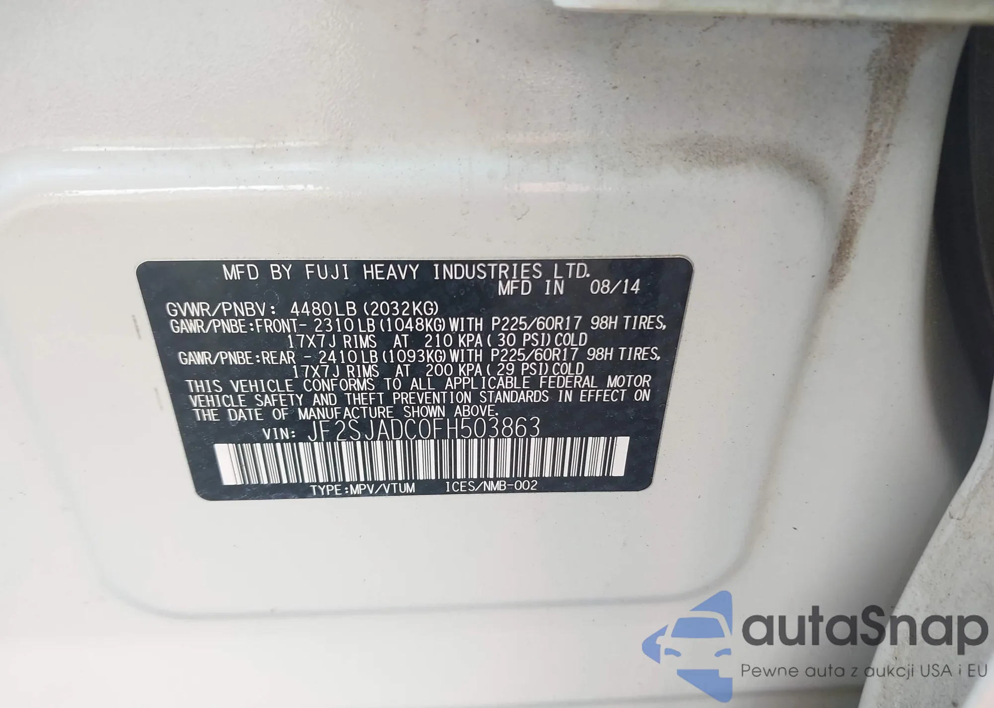 VIN: JF2SJADC0FH503863