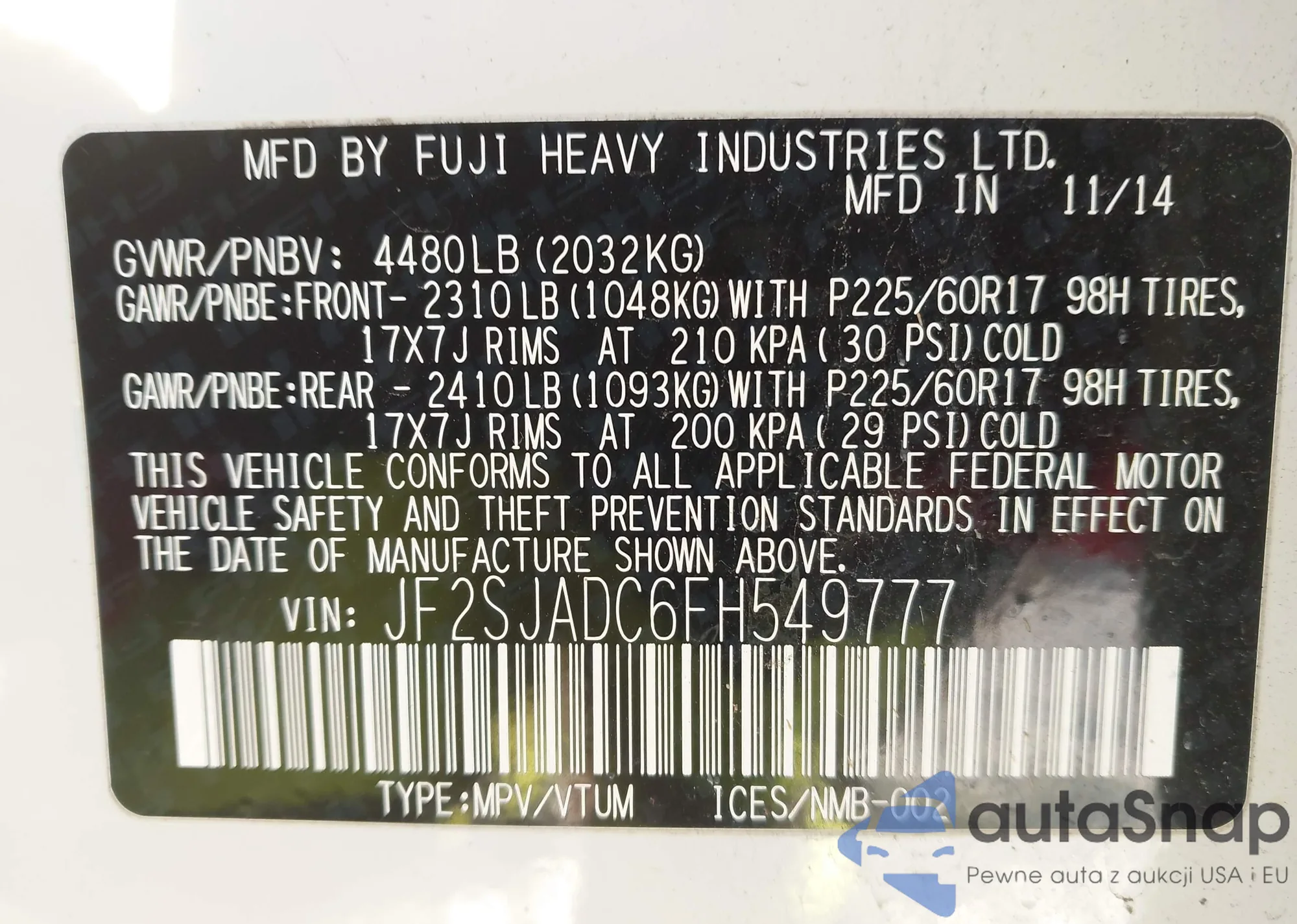 VIN: JF2SJADC6FH549777