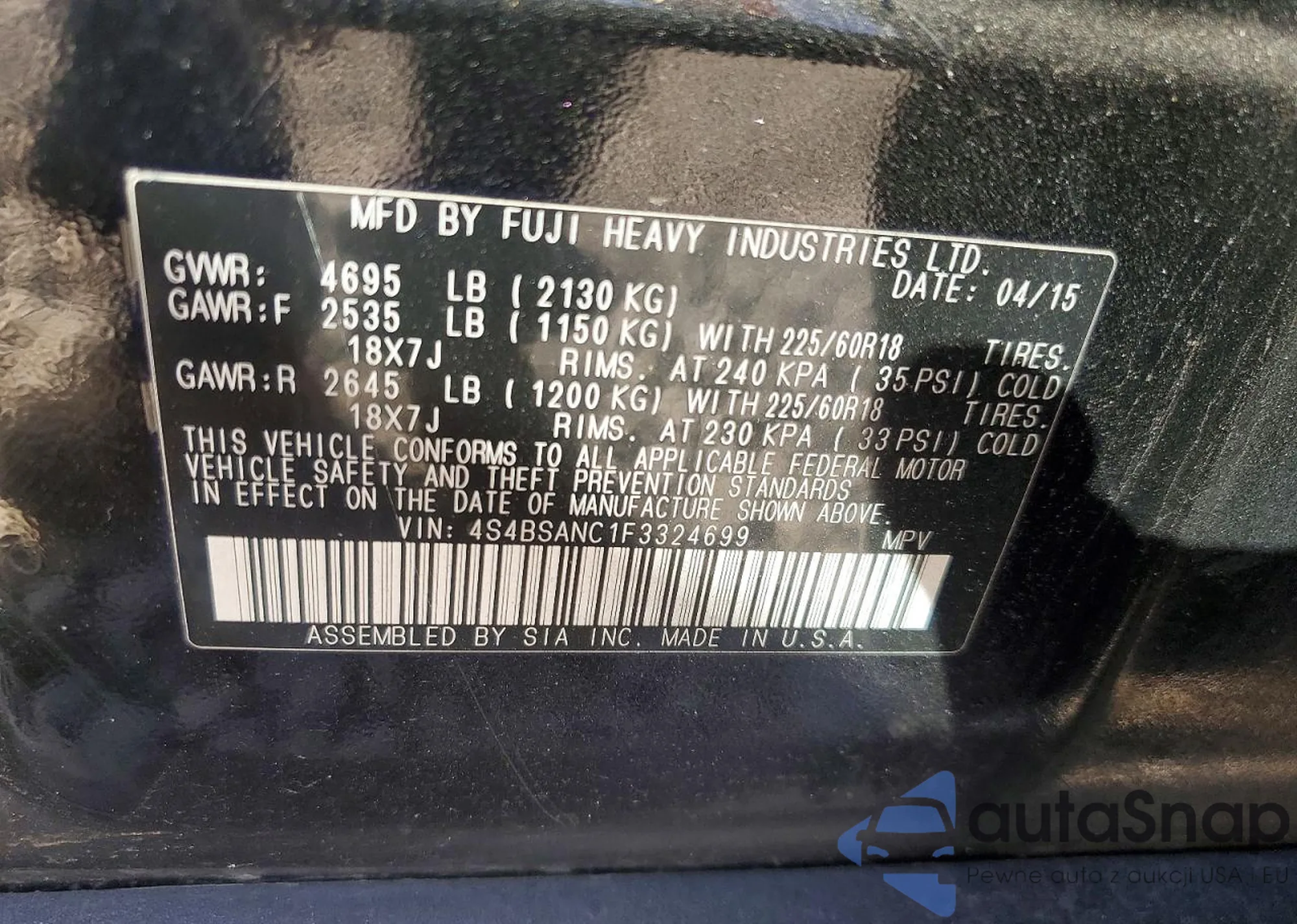 VIN: 4S4BSANC1F3324699