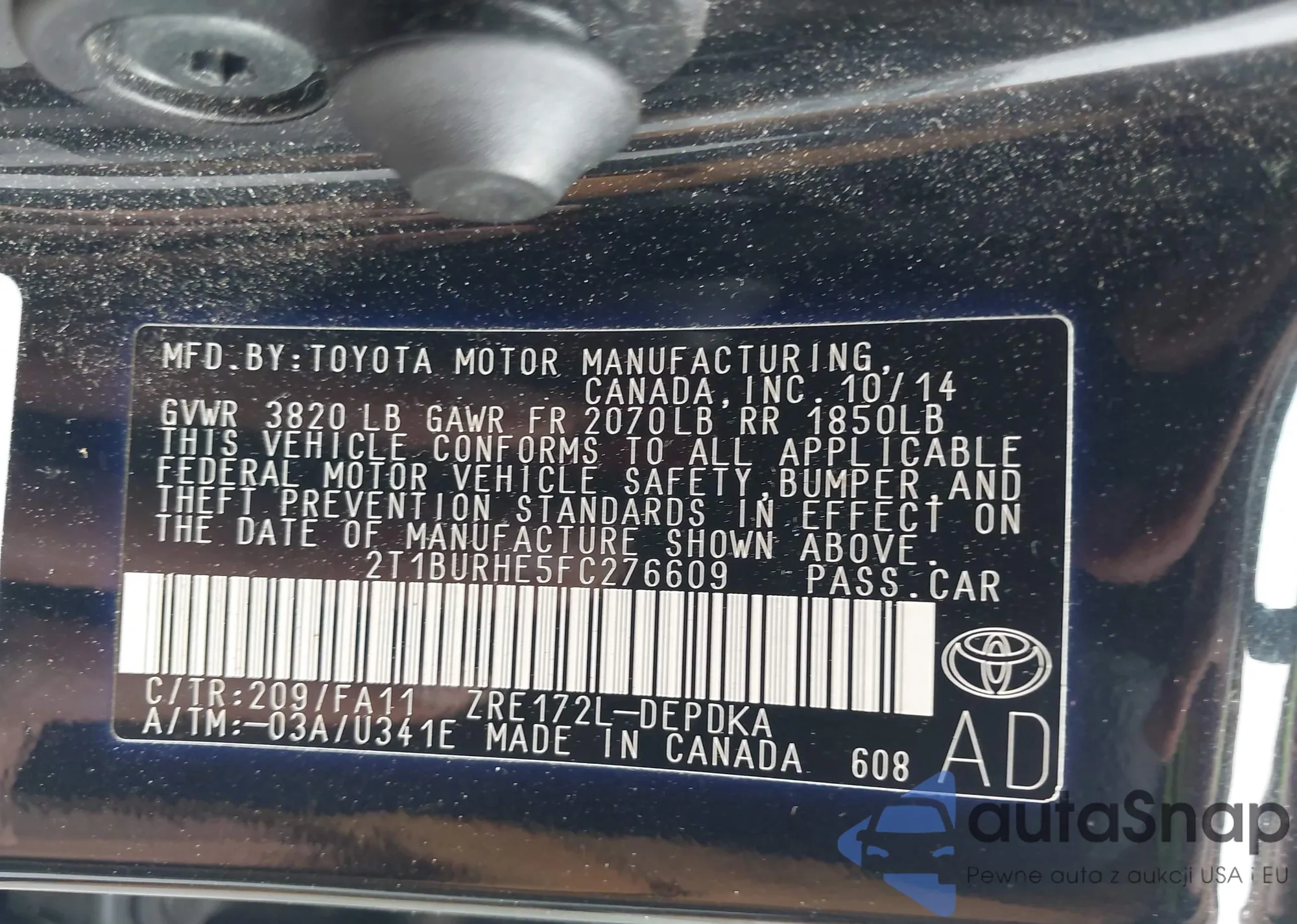 Samochód Toyota Corolla 2015 (VIN 2T1BURHE5FC276609) sprzedaje go niezweryfikowany sprzedawca. Zalecamy raport Carfax i potwierdzenie możliwości rejestracji pojazdu przed zakupem.