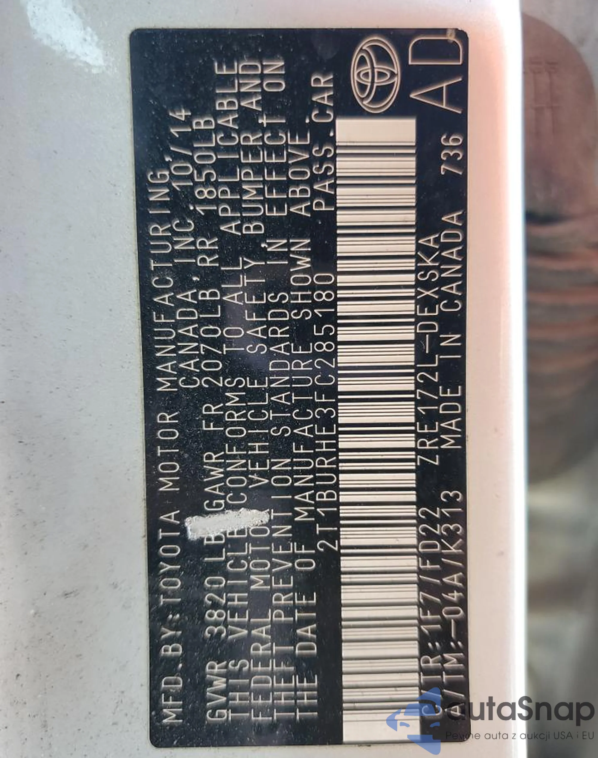 Toyota Corolla 2015 – Historia pojazdu (sprzedany na COPART)
