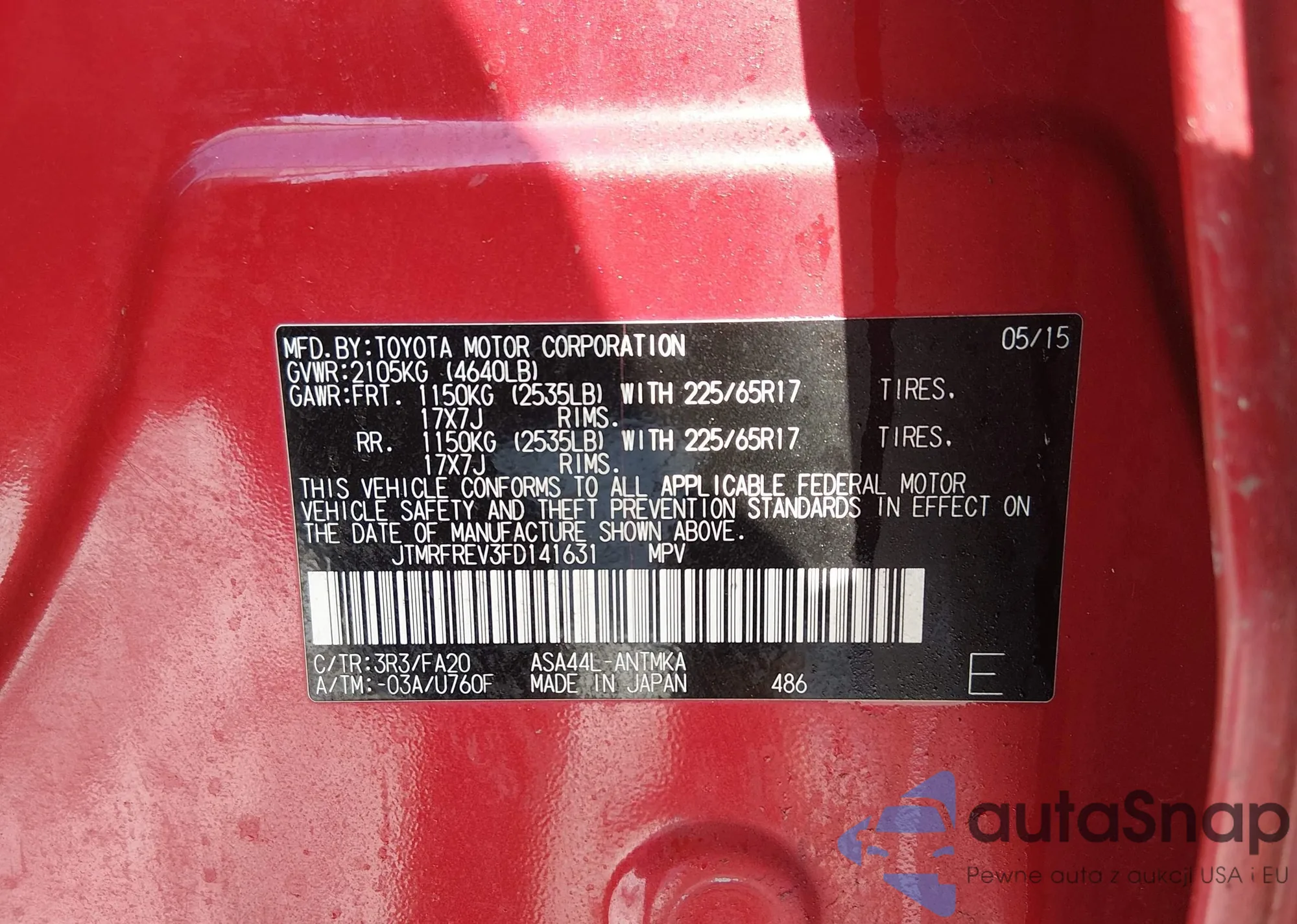 VIN: JTMRFREV3FD141631