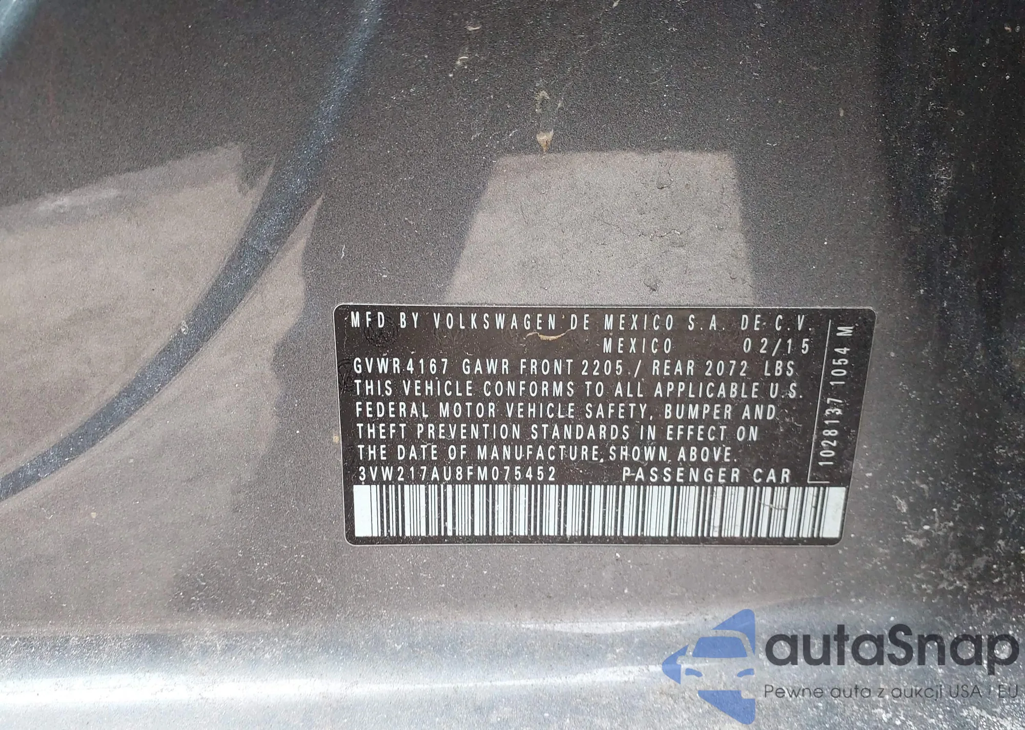 • VIN: 3VW217AU8FM075452