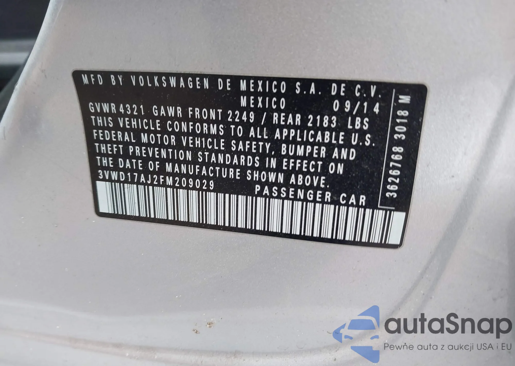VIN: 3VWD17AJ2FM209029