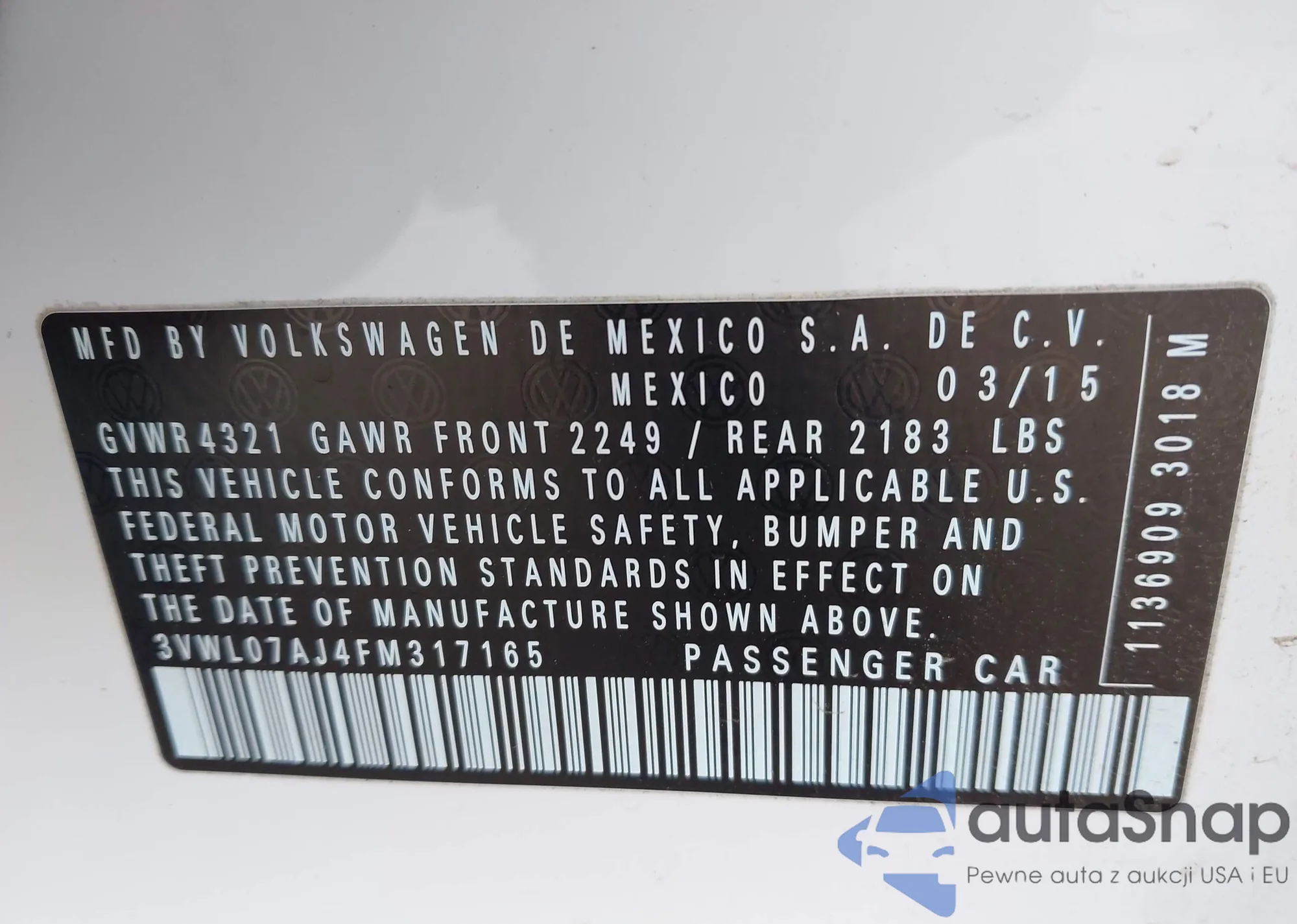 VIN: 3VWL07AJ4FM317165