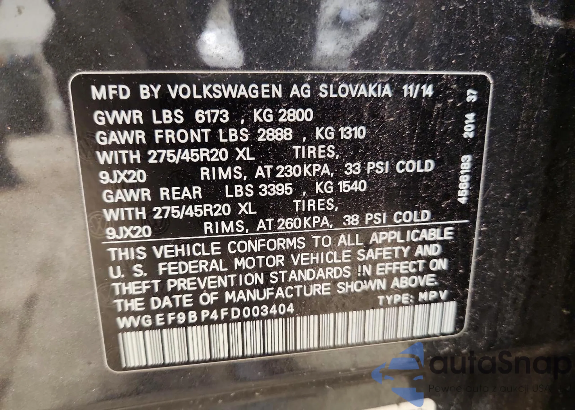 • VIN: WVGEF9BP4FD003404