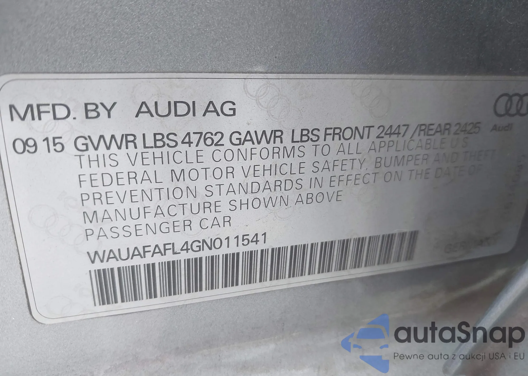 • VIN: WAUAFAFL4GN011541