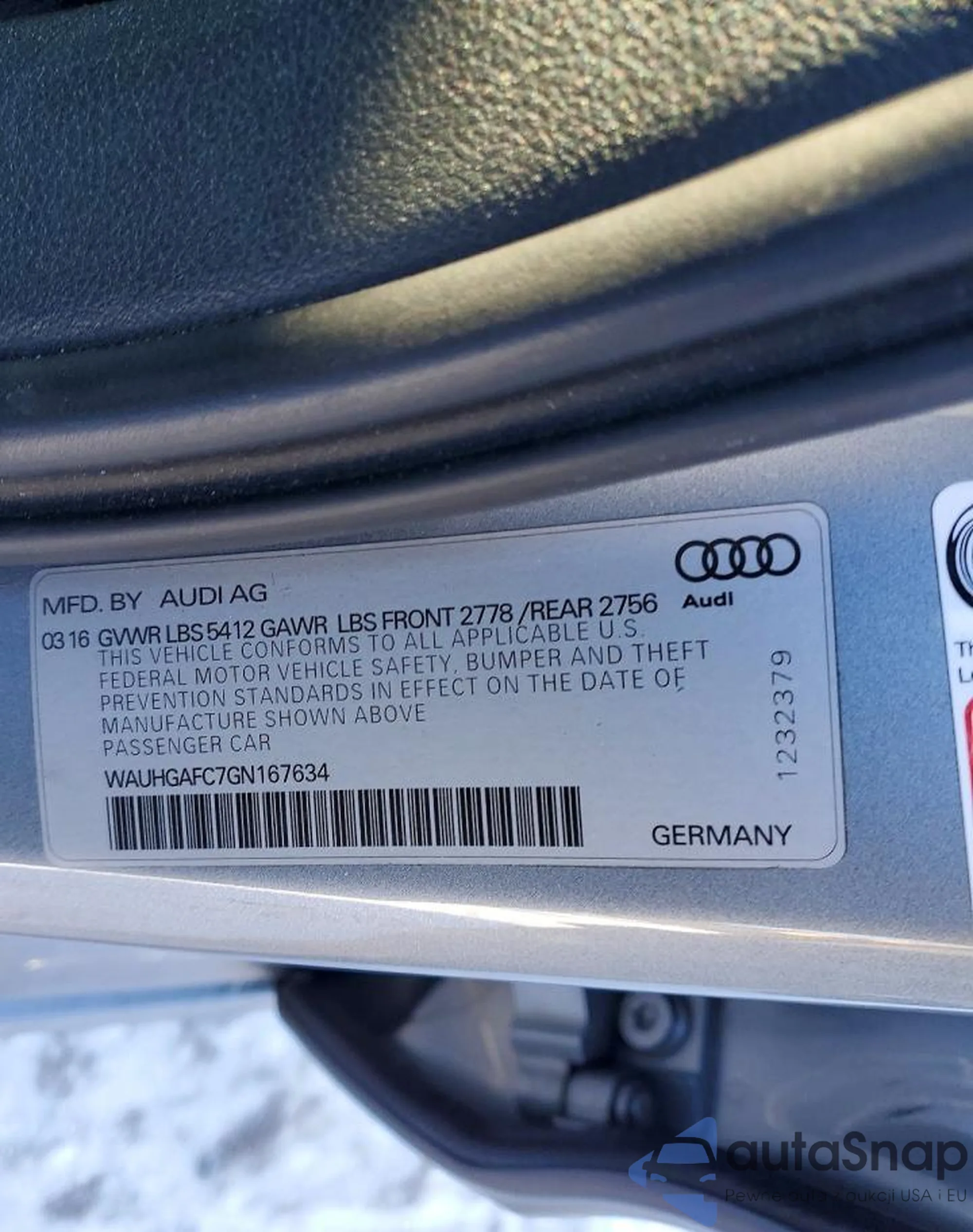 • VIN: WAUHGAFC7GN167634