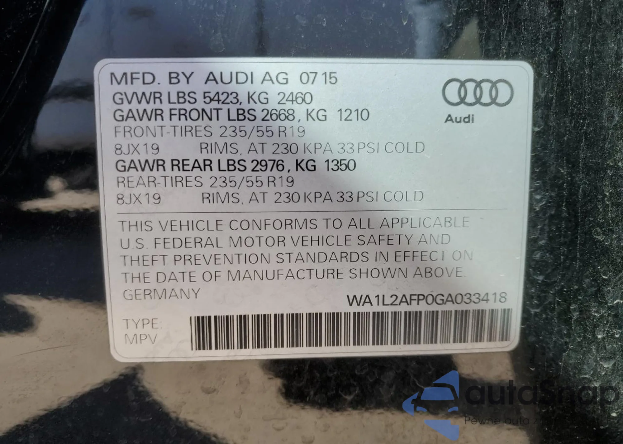 Audi Q5 2016 – Historia pojazdu (sprzedany na COPART)
