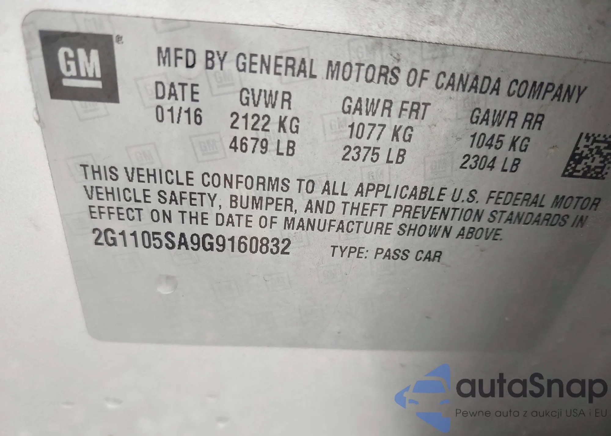 VIN: 2G1105SA9G9160832