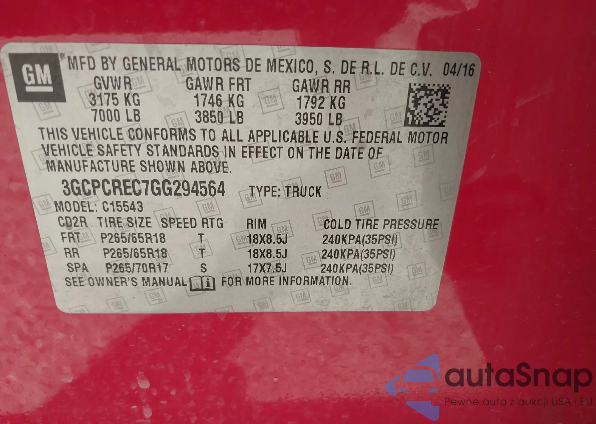 VIN: 3GCPCREC7GG294564