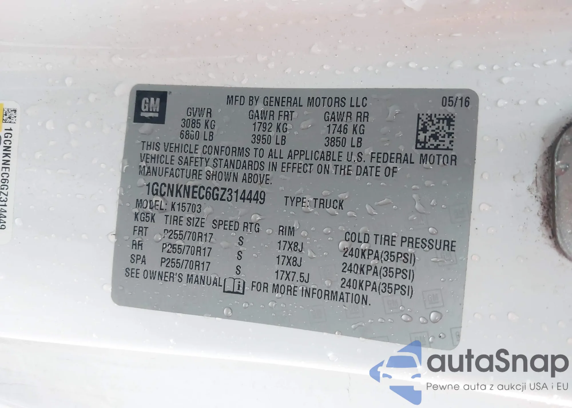 Samochód Chevrolet Silverado 2016 (VIN 1GCNKNEC6GZ314449) nie był wcześniej licytowany. Dokumenty są czyste, przebieg odpowiada lub jest niższy niż średnia rynku. Sprzedaje go firma ubezpieczeniowa – polecamy zakup. Dostawa do portu zajmie ok. 6–8 tygodni.