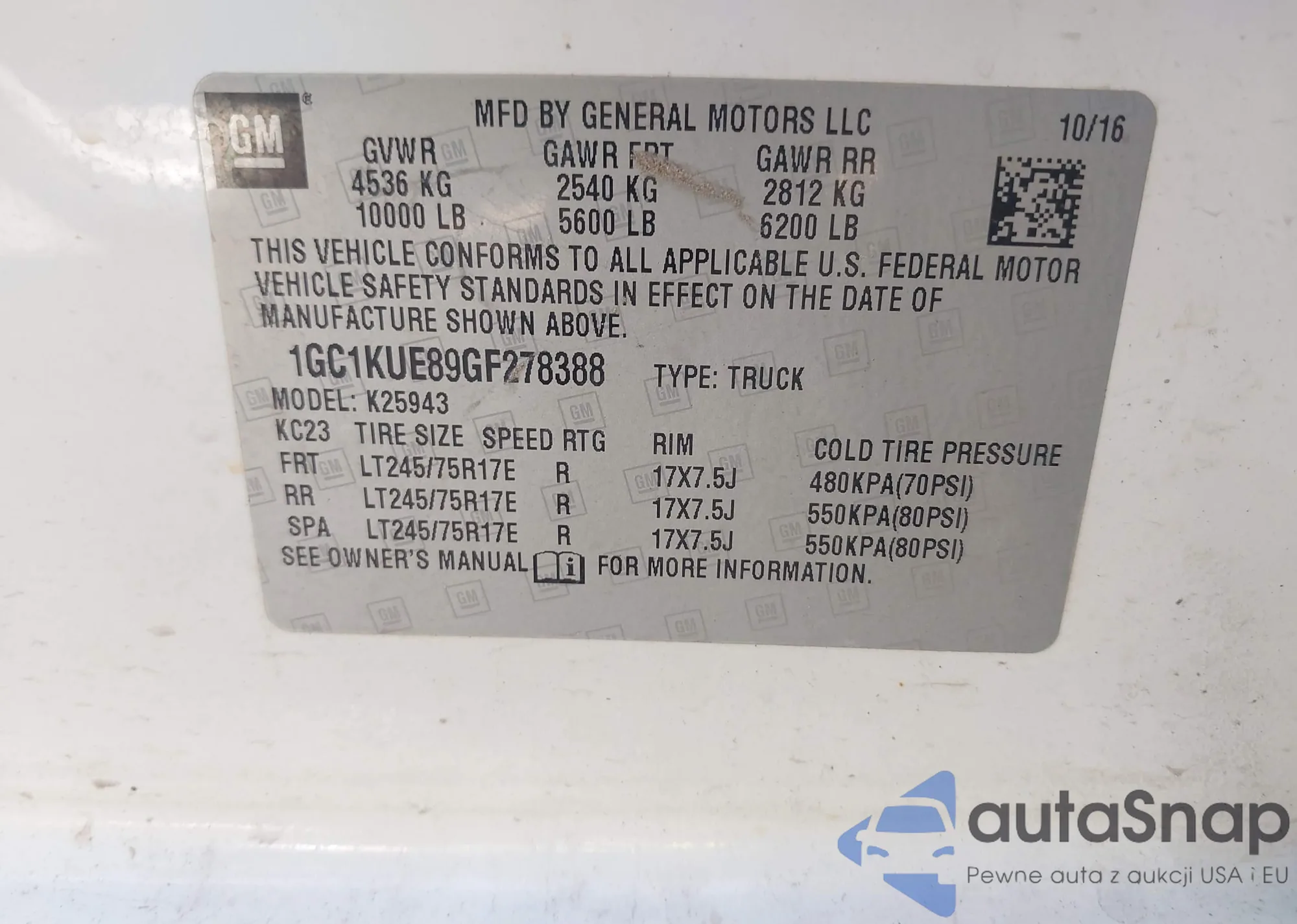 • VIN: 1GC1KUE89GF278388