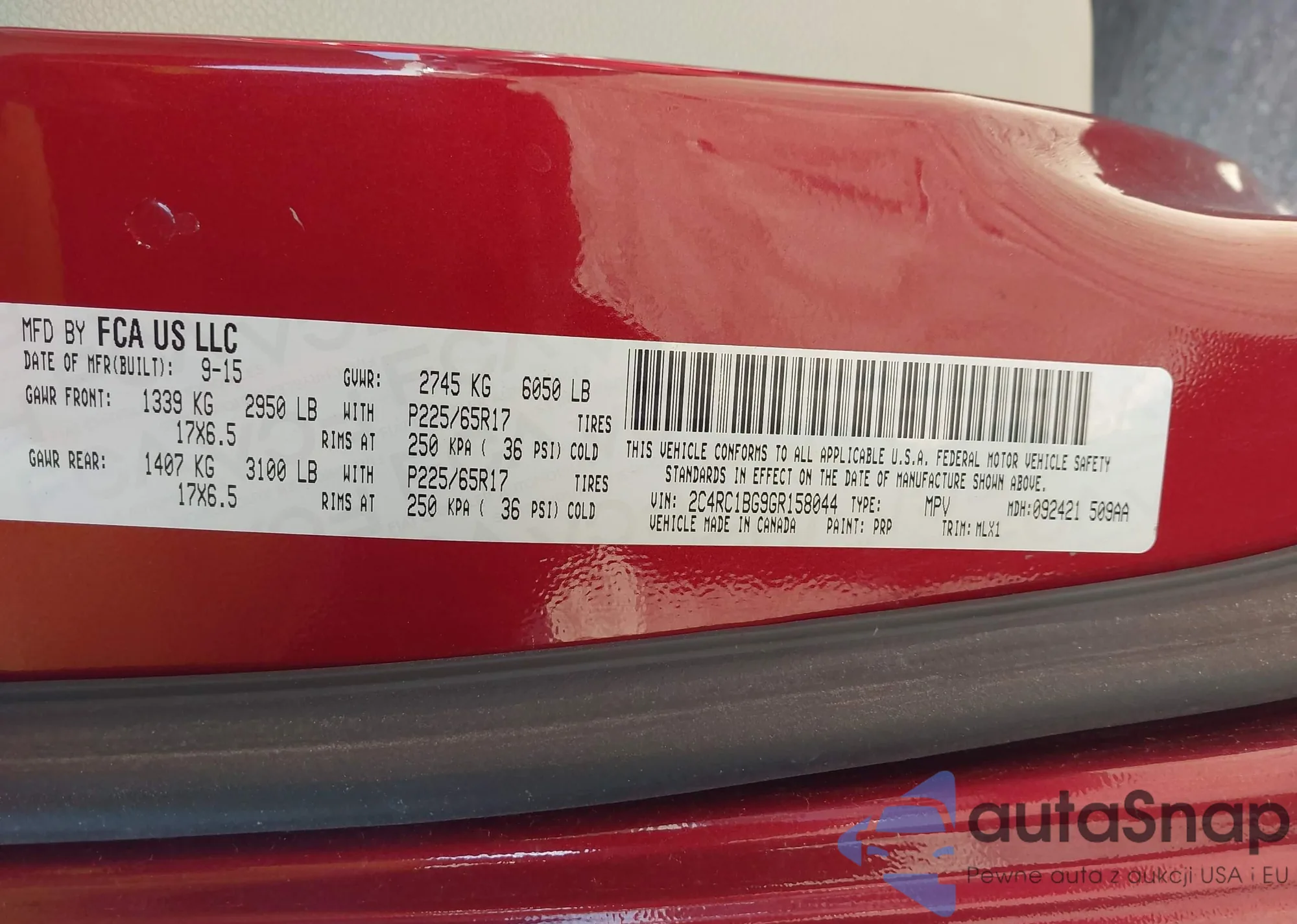 • VIN: 2C4RC1BG9GR158044
