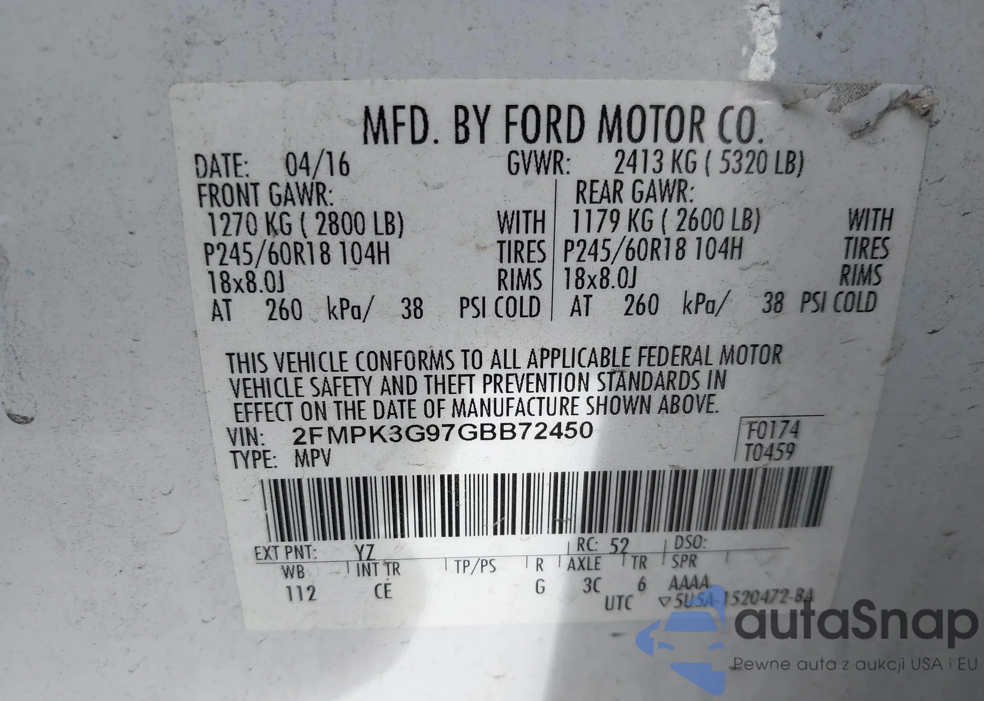 Samochód Ford Edge 2016 (VIN 2FMPK3G97GBB72450) nie był wcześniej licytowany. Dokumenty są czyste, przebieg odpowiada lub jest niższy niż średnia rynku. Sprzedaje go firma ubezpieczeniowa – polecamy zakup. Dostawa do portu zajmie ok. 6–8 tygodni.