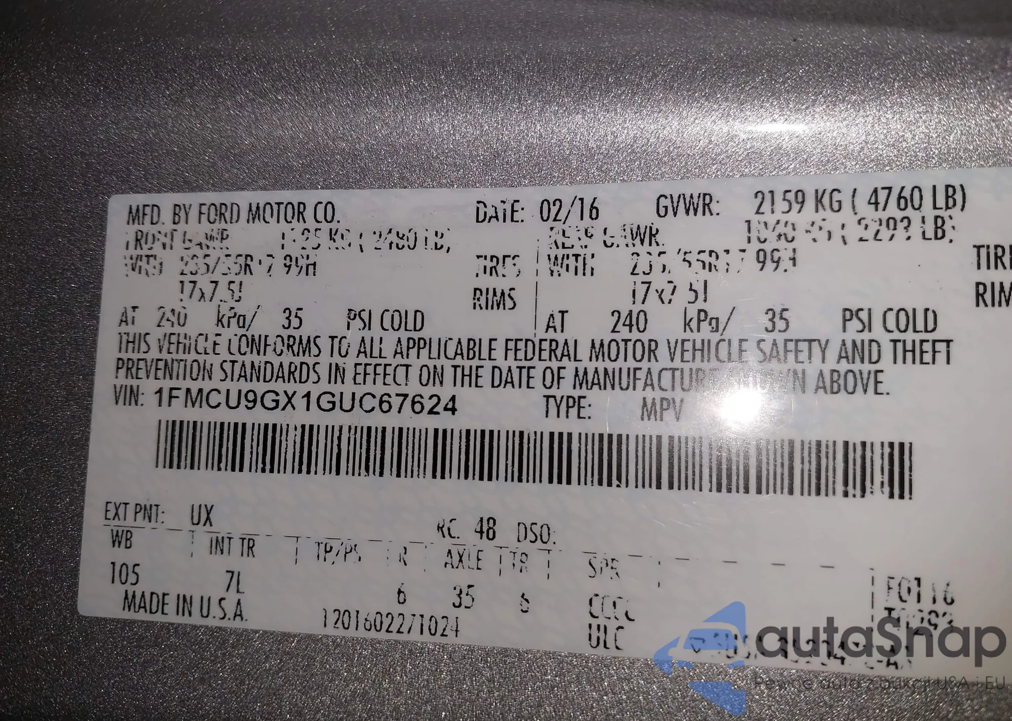 Samochód Ford Escape 2016 (VIN 1FMCU9GX1GUC67624) nie był wcześniej licytowany. Dokumenty są czyste, przebieg odpowiada lub jest niższy niż średnia rynku. Sprzedaje go firma ubezpieczeniowa – polecamy zakup. Dostawa do portu zajmie ok. 6–8 tygodni.