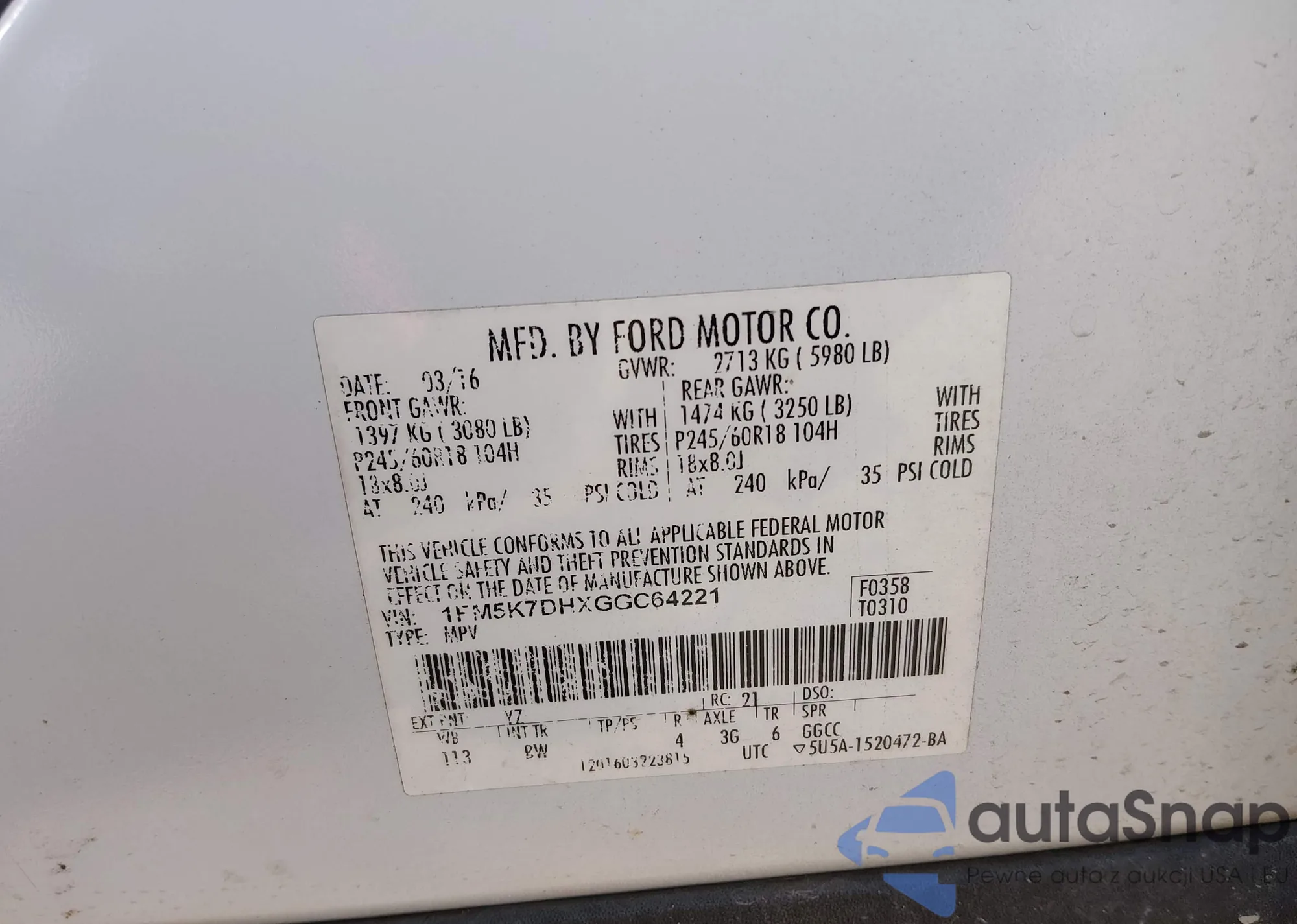 • VIN: 1FM5K7DHXGGC64221