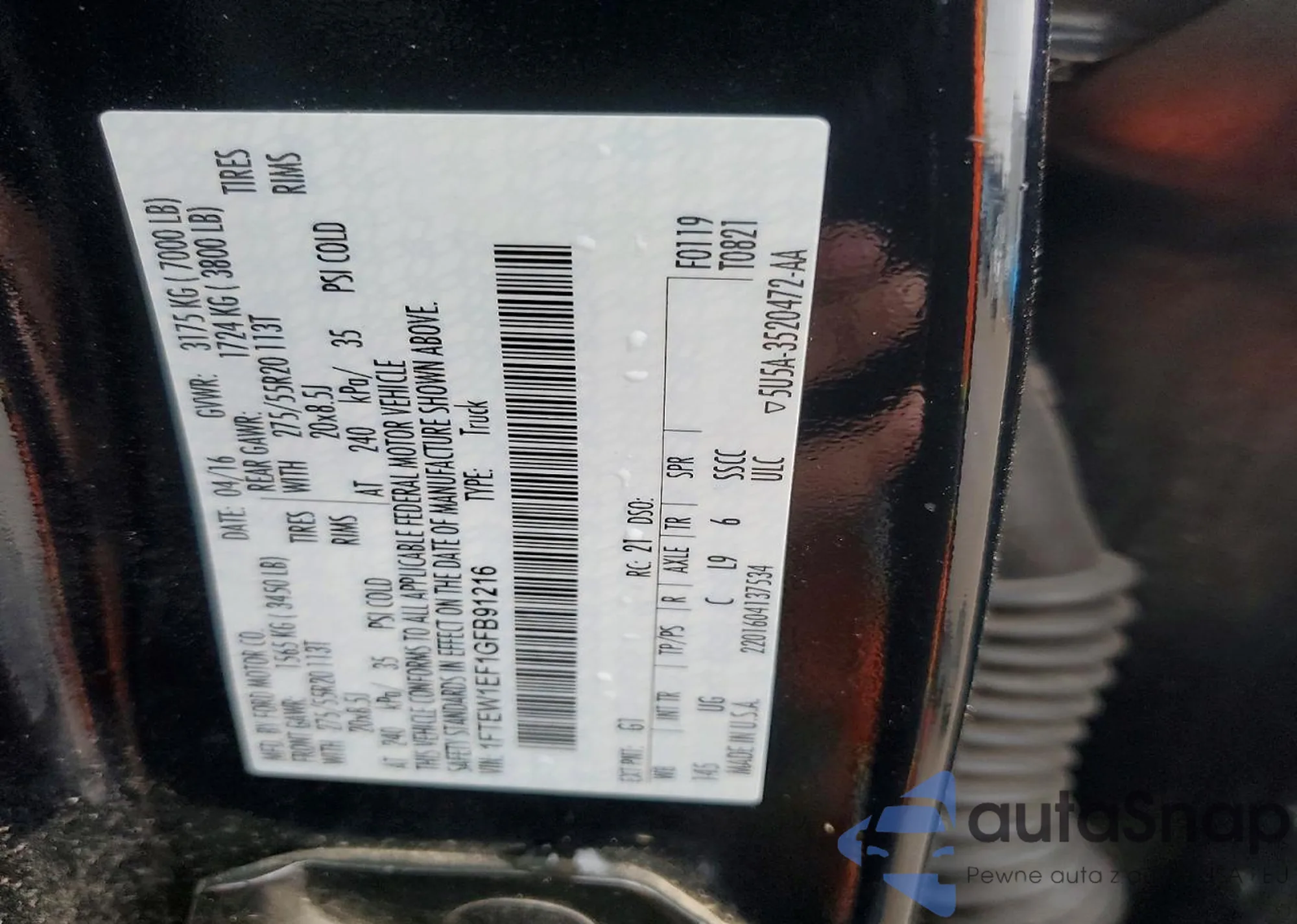 Samochód Ford F-150 2016 (VIN 1FTEW1EF1GFB91216) nie był wcześniej licytowany. Dokumenty są czyste, przebieg odpowiada lub jest niższy niż średnia rynku. Sprzedaje go firma ubezpieczeniowa – polecamy zakup. Dostawa do portu zajmie ok. 6–8 tygodni.