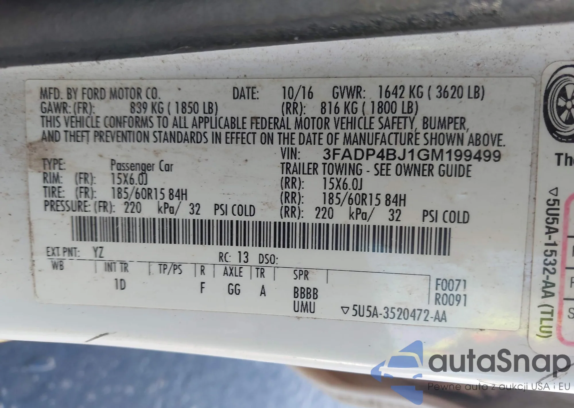 • VIN: 3FADP4BJ1GM199499
