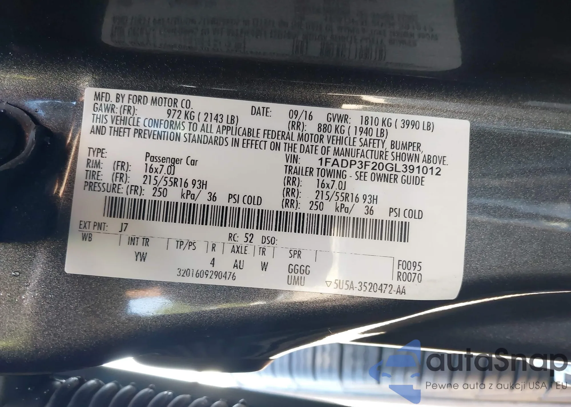 VIN: 1FADP3F20GL391012
