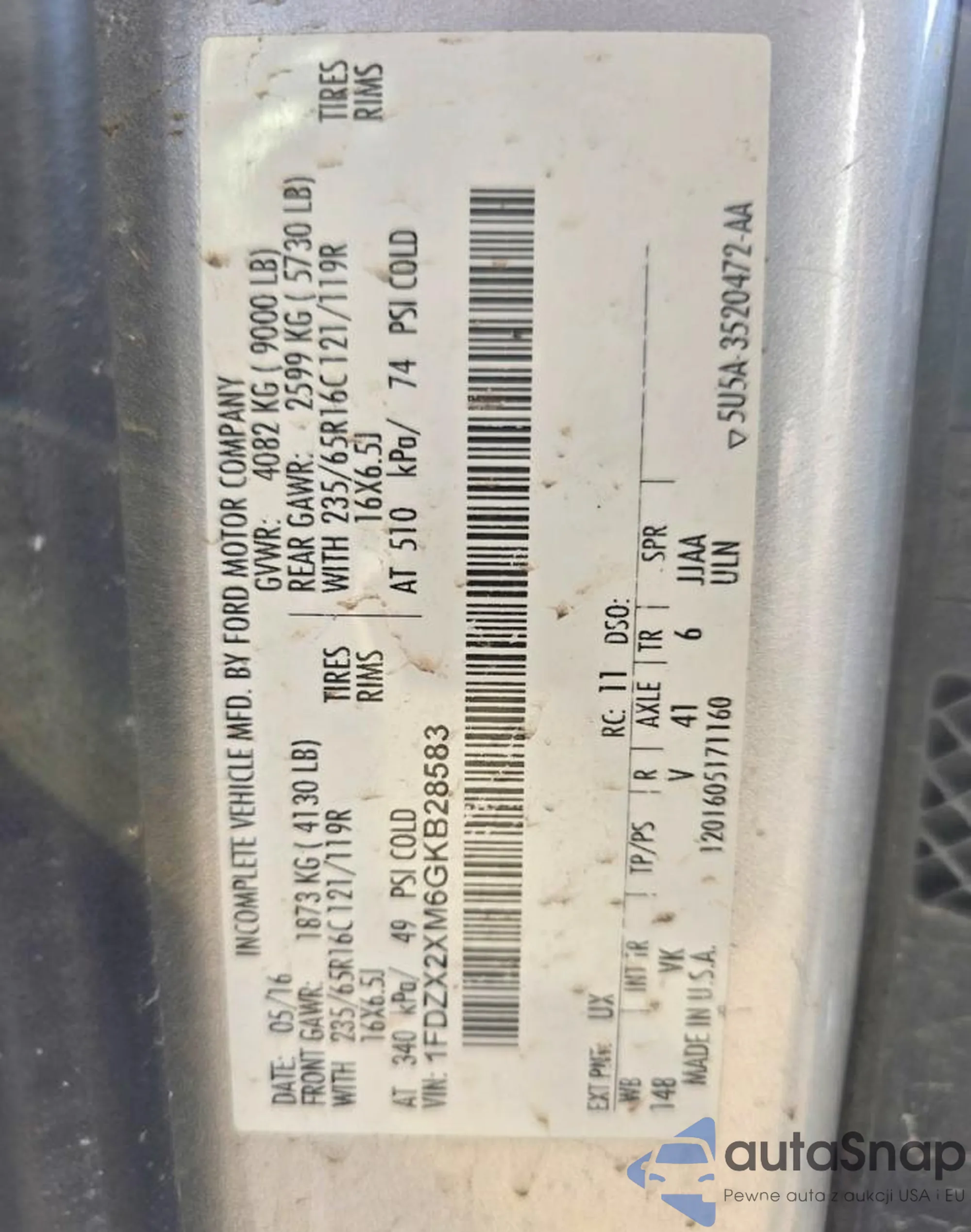 Samochód Ford Transit 2016 (VIN 1FDZX2XM6GKB28583) sprzedaje go niezweryfikowany sprzedawca. Zalecamy raport Carfax i potwierdzenie możliwości rejestracji pojazdu przed zakupem.
