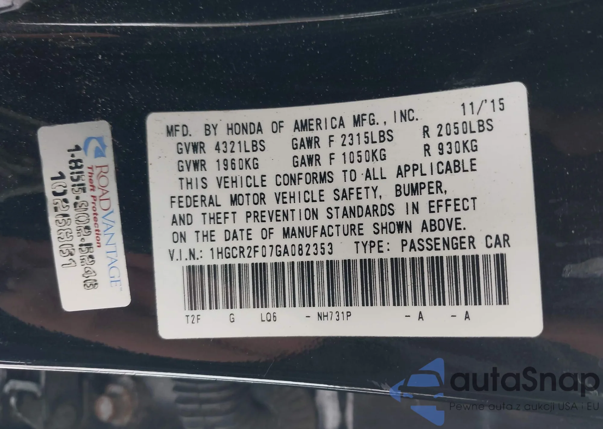 Samochód Honda Accord 2016 (VIN 1HGCR2F07GA082353) nie był wcześniej licytowany. Dokumenty są czyste, przebieg odpowiada lub jest niższy niż średnia rynku. Sprzedaje go firma ubezpieczeniowa – polecamy zakup. Dostawa do portu zajmie ok. 6–8 tygodni.