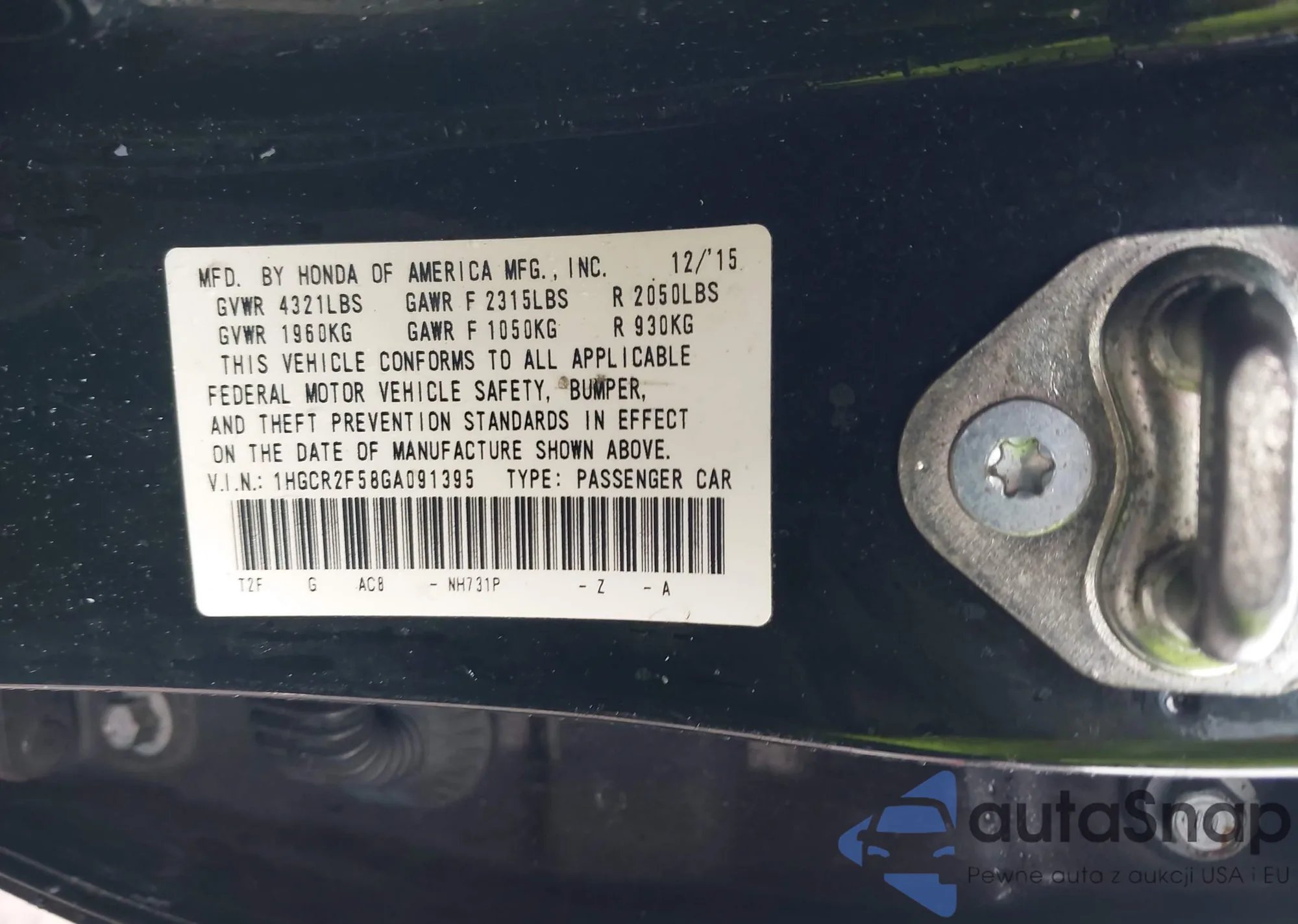 Samochód Honda Accord 2016 (VIN 1HGCR2F58GA091395) nie był wcześniej licytowany. Dokumenty są czyste, przebieg odpowiada lub jest niższy niż średnia rynku. Sprzedaje go firma ubezpieczeniowa – polecamy zakup. Dostawa do portu zajmie ok. 6–8 tygodni.