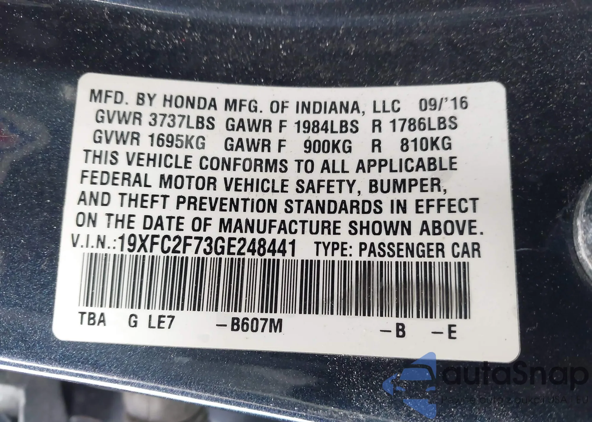 VIN: 19XFC2F73GE248441