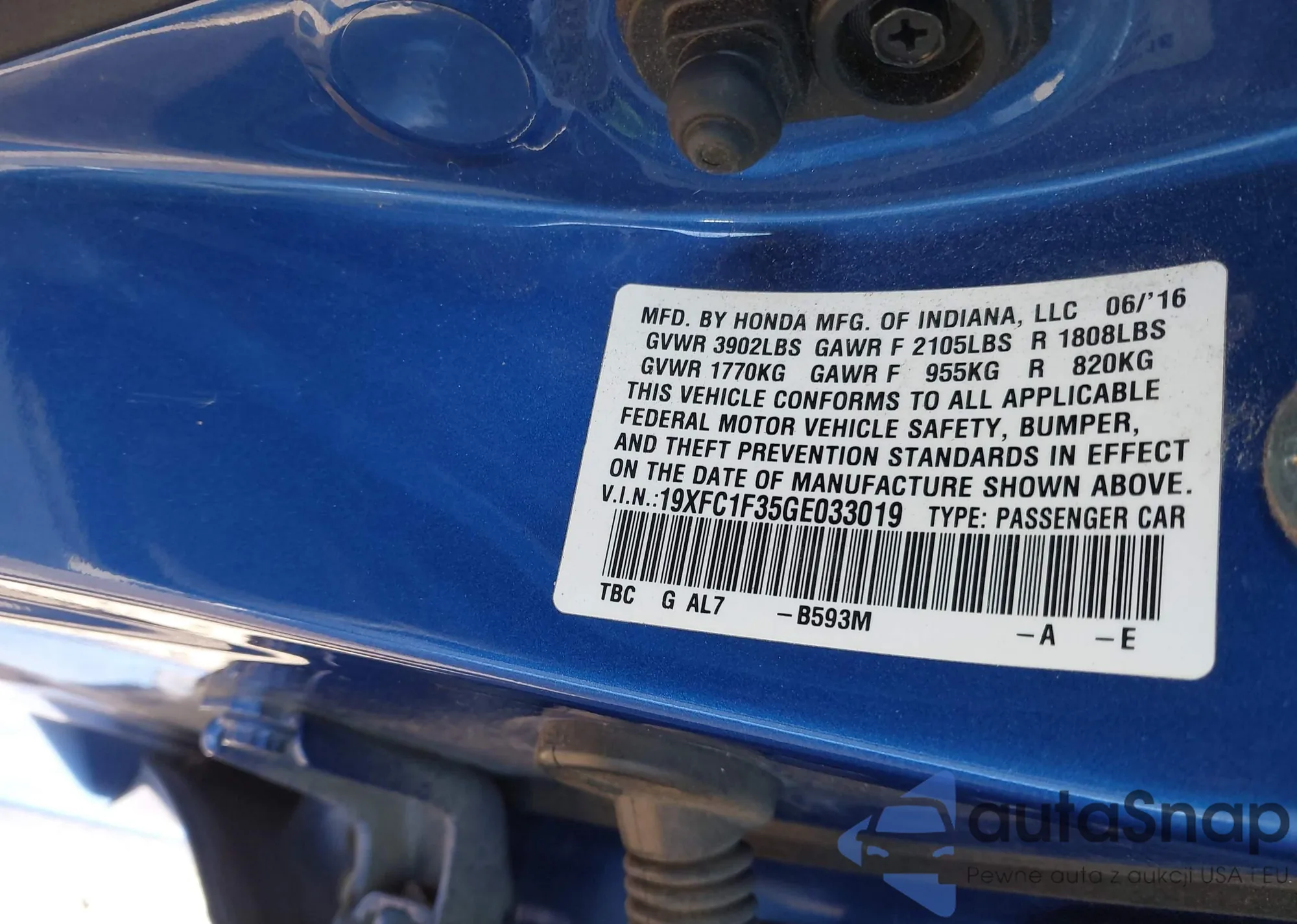 • VIN: 19XFC1F35GE033019