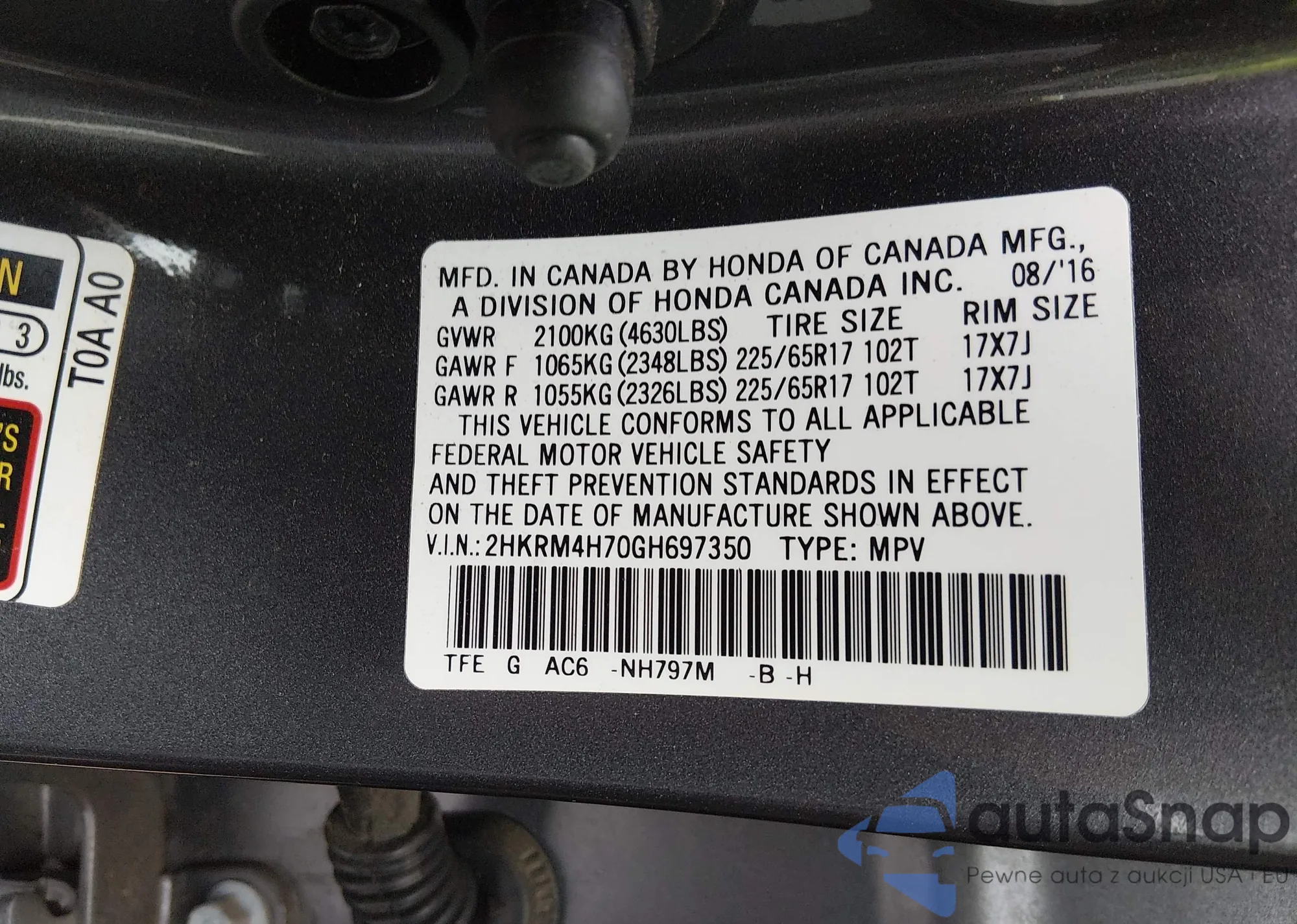 VIN: 2HKRM4H70GH697350