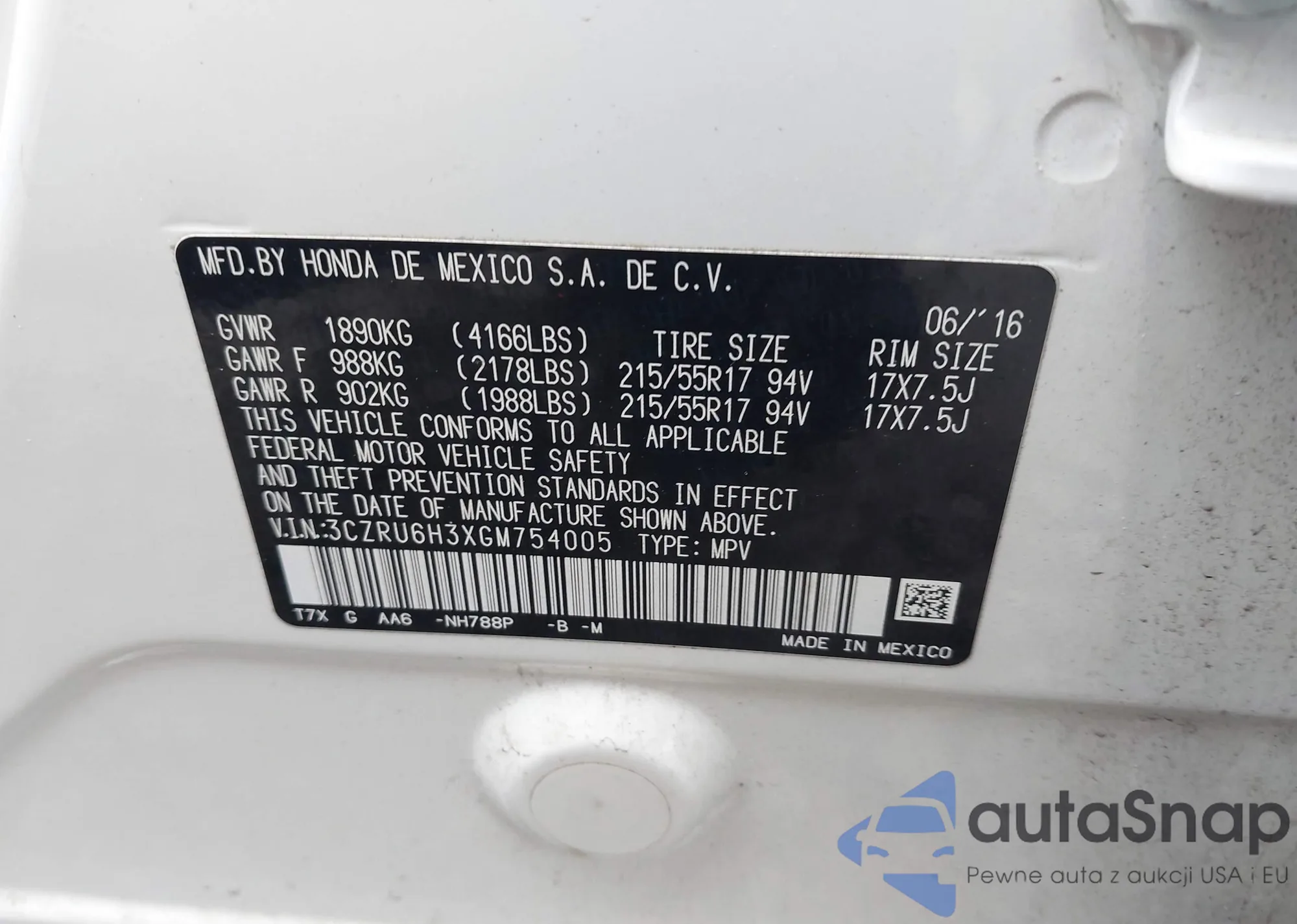 Samochód Honda HR-V 2016 (VIN 3CZRU6H3XGM754005) nie był wcześniej licytowany. Dokumenty są czyste, przebieg odpowiada lub jest niższy niż średnia rynku. Sprzedaje go firma ubezpieczeniowa – polecamy zakup. Dostawa do portu zajmie ok. 6–8 tygodni.