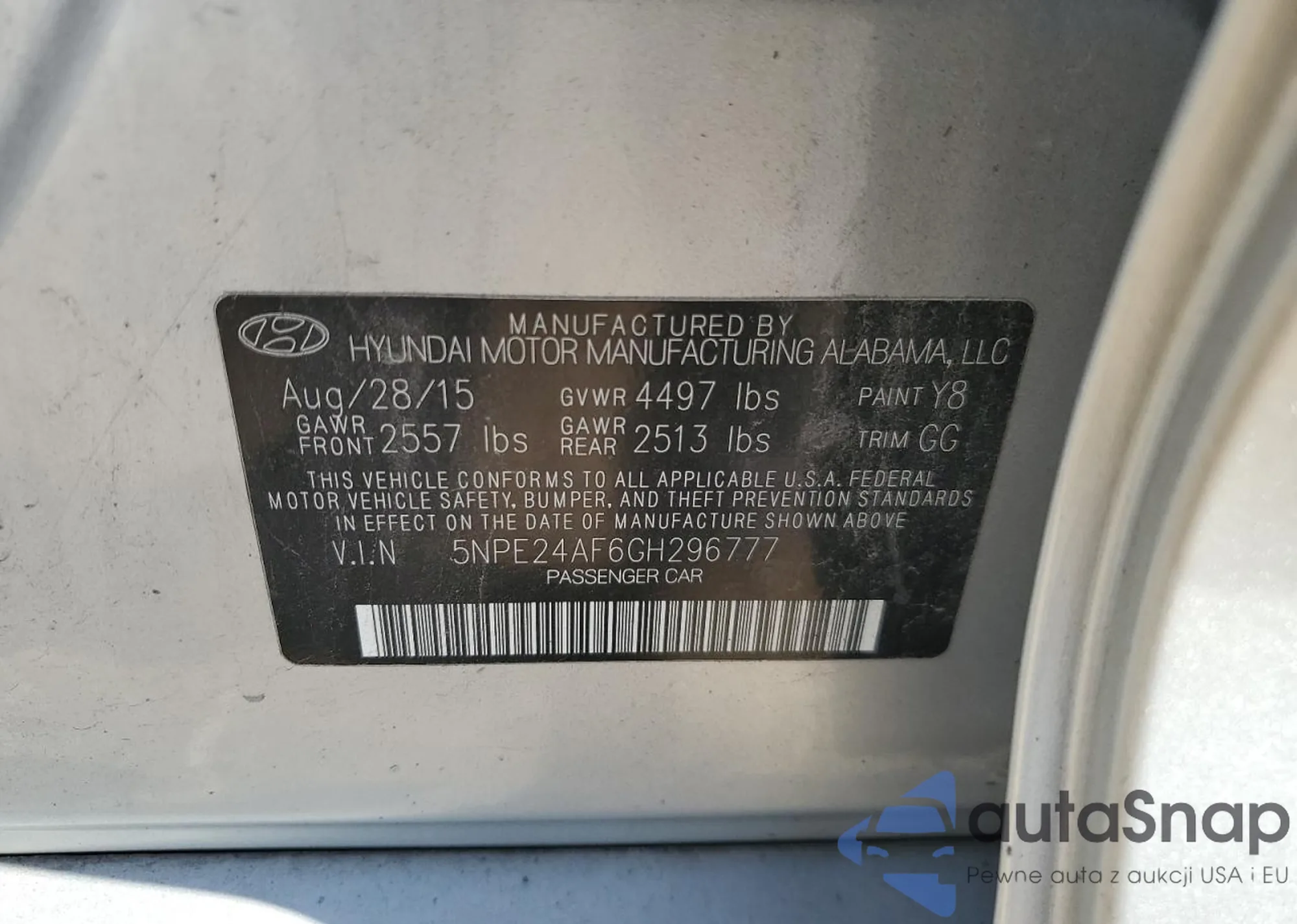 VIN: 5NPE24AF6GH296777