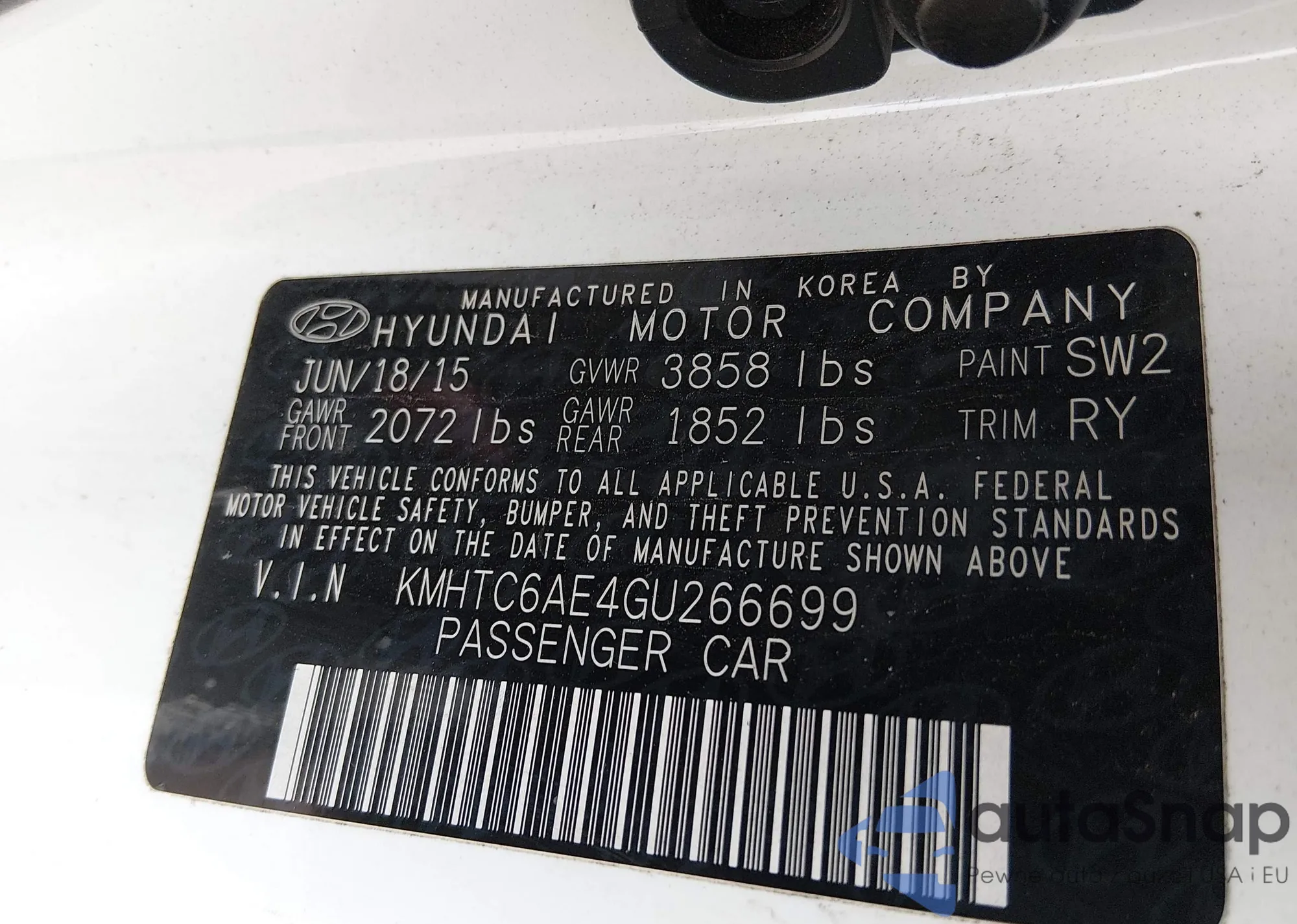 • VIN: KMHTC6AE4GU266699
