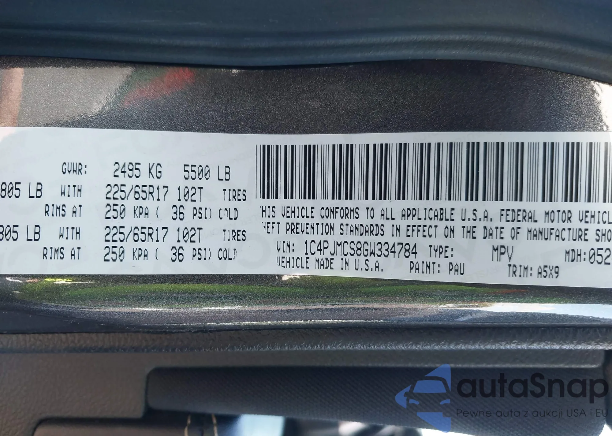 • VIN: 1C4PJMCS8GW334784
