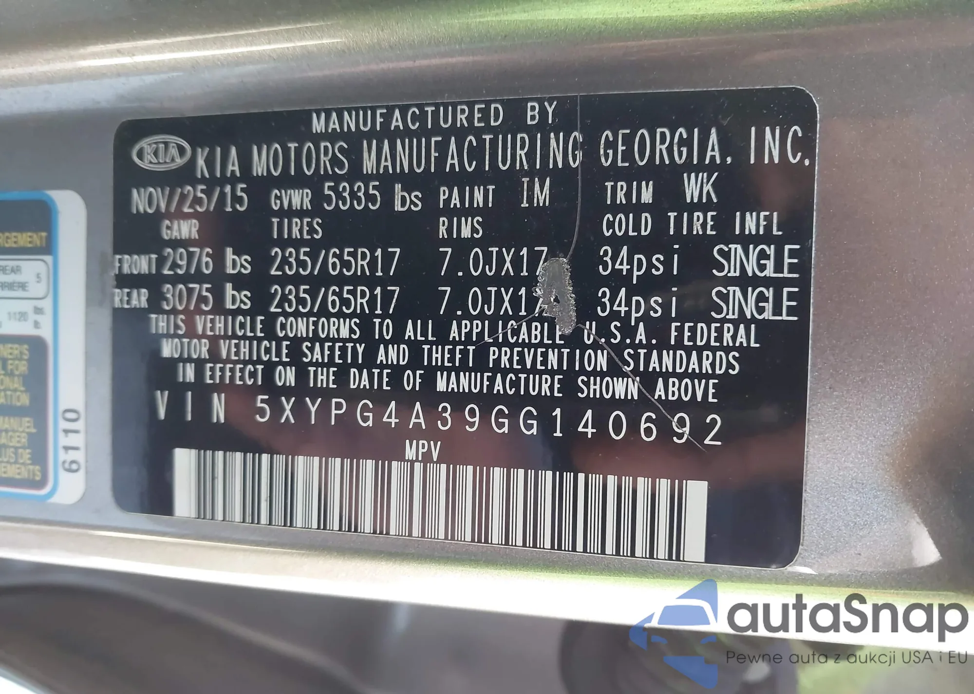 Samochód Kia Sorento 2016 (VIN 5XYPG4A39GG140692) nie był wcześniej licytowany. Dokumenty są czyste, przebieg odpowiada lub jest niższy niż średnia rynku. Sprzedaje go firma ubezpieczeniowa – polecamy zakup. Dostawa do portu zajmie ok. 6–8 tygodni.