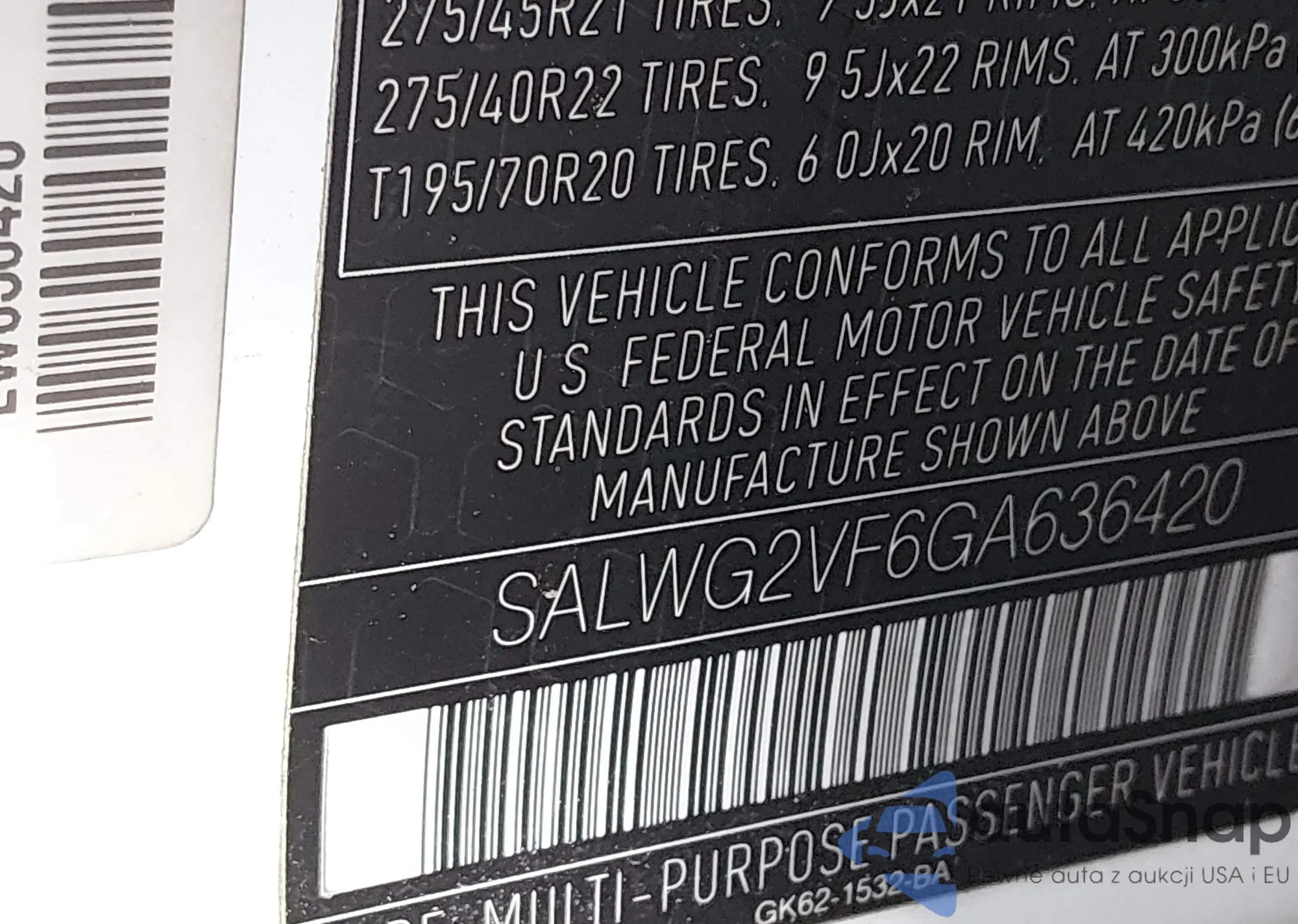 • VIN: SALWG2VF6GA636420
