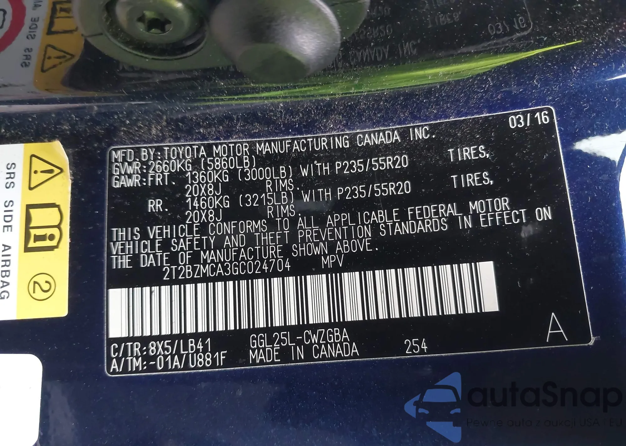 Samochód Lexus RX 2016 (VIN 2T2BZMCA3GC024704) ma dokumenty uniemożliwiające rejestrację. Mogą pojawić się trudności przy eksporcie i rejestracji. Skontaktuj się z ekspertami AutaSnap w celu znalezienia alternatywy.
