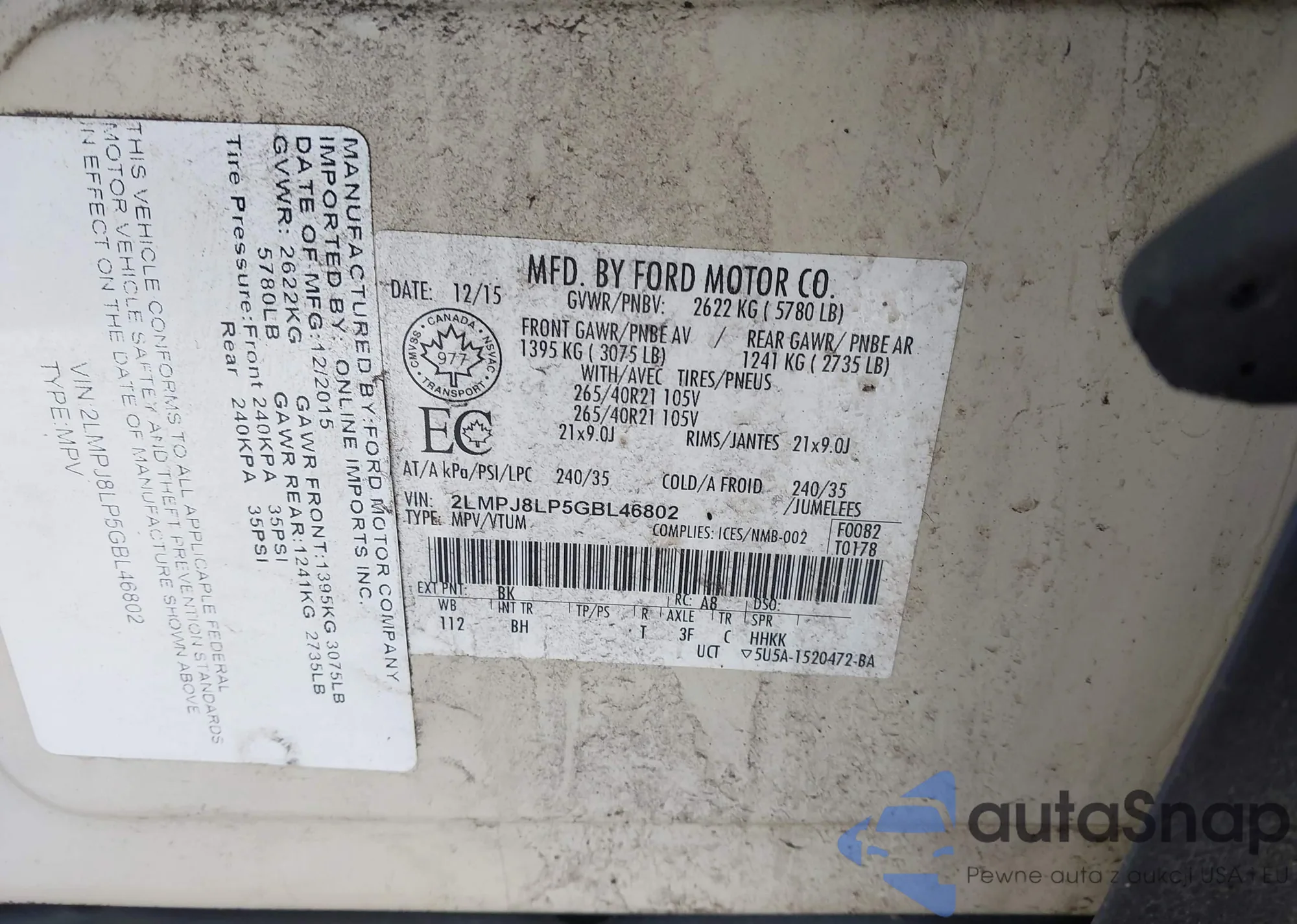 Samochód Lincoln MKX 2016 (VIN 2LMPJ8LP5GBL46802) nie był wcześniej licytowany. Dokumenty są czyste, przebieg odpowiada lub jest niższy niż średnia rynku. Sprzedaje go firma ubezpieczeniowa – polecamy zakup. Dostawa do portu zajmie ok. 6–8 tygodni.