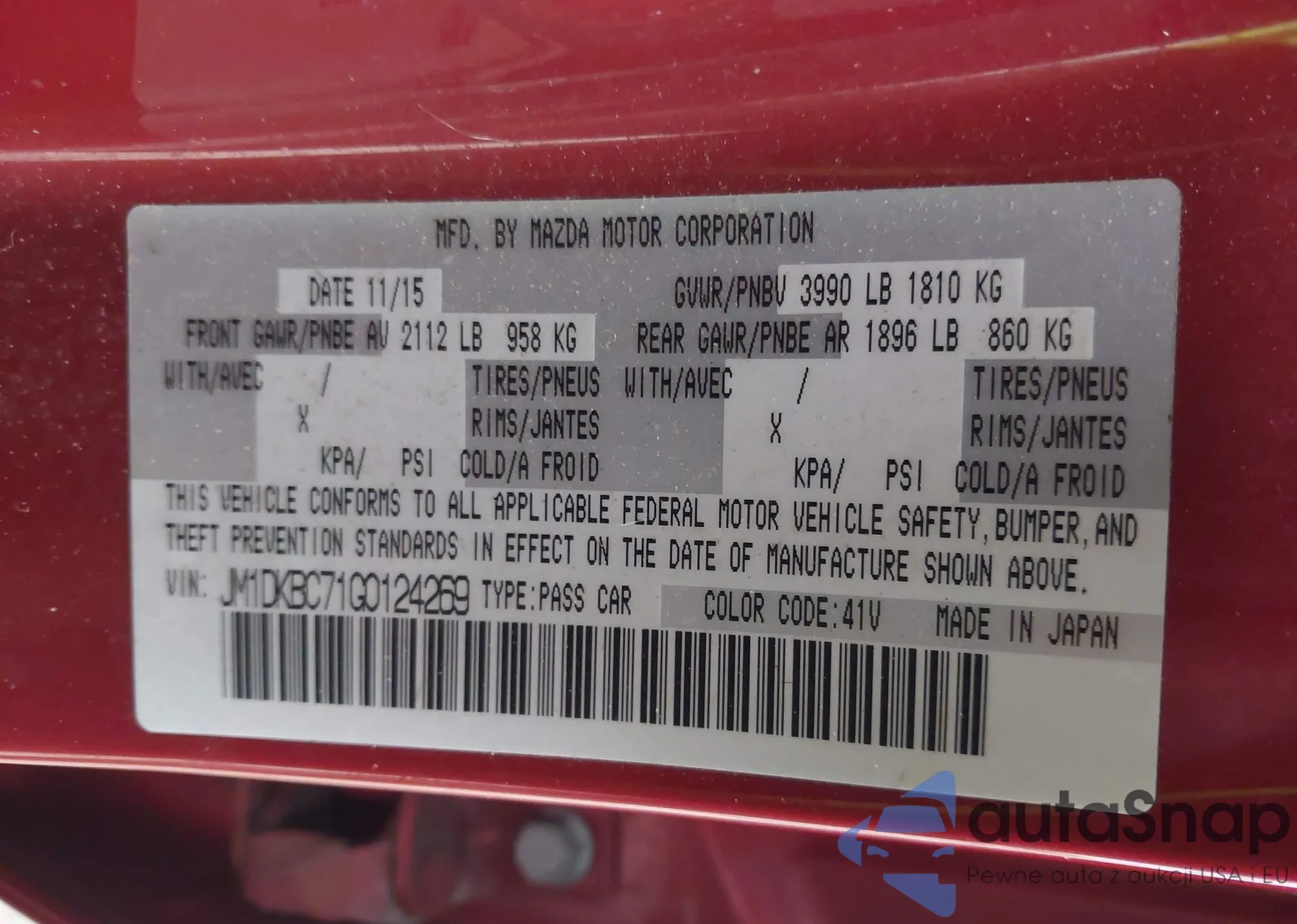• VIN: JM1DKBC71G0124269
