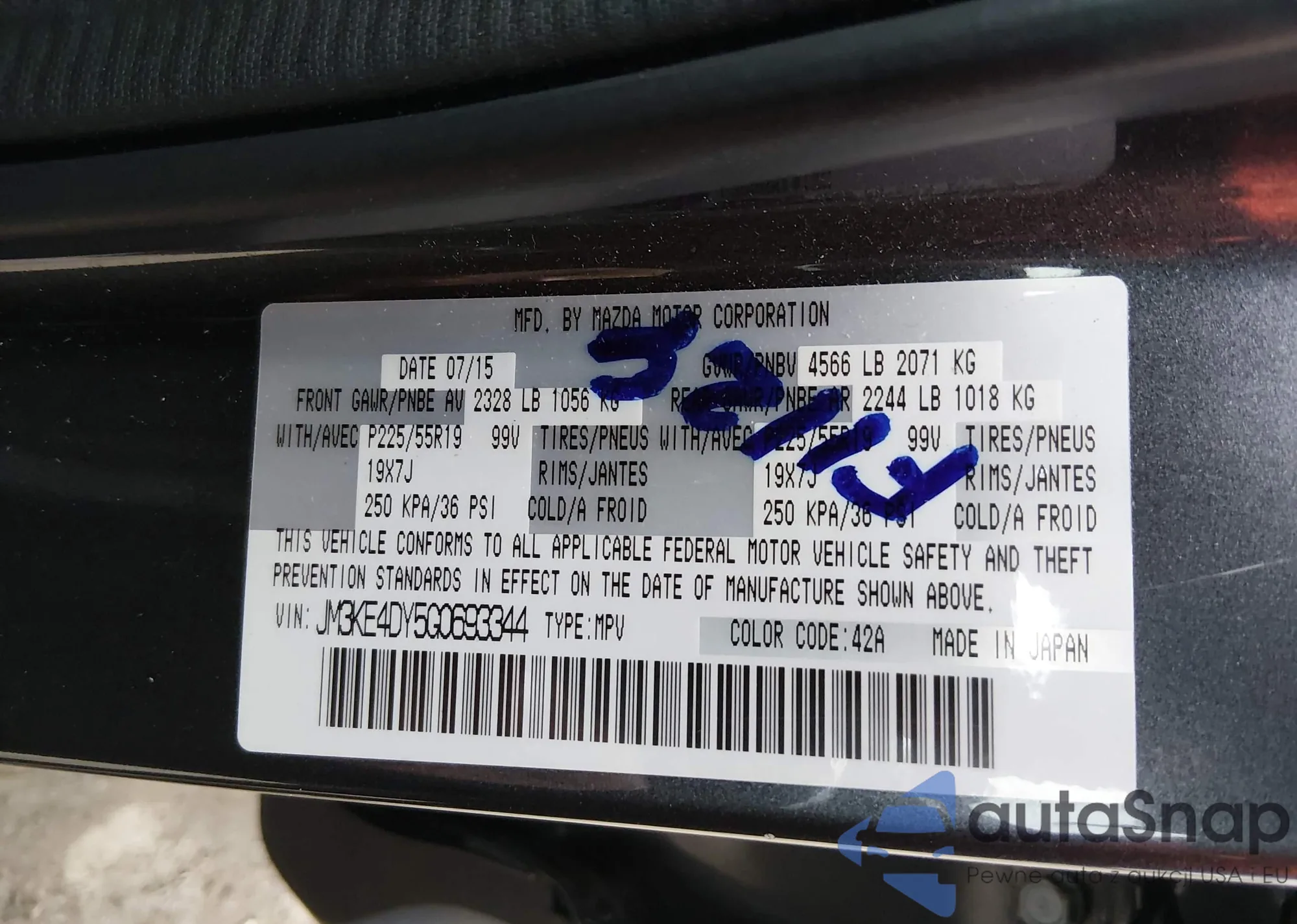Samochód Mazda CX-5 2016 (VIN JM3KE4DY5G0693344) nie był wcześniej licytowany. Dokumenty są czyste, przebieg odpowiada lub jest niższy niż średnia rynku. Sprzedaje go firma ubezpieczeniowa – polecamy zakup. Dostawa do portu zajmie ok. 6–8 tygodni.