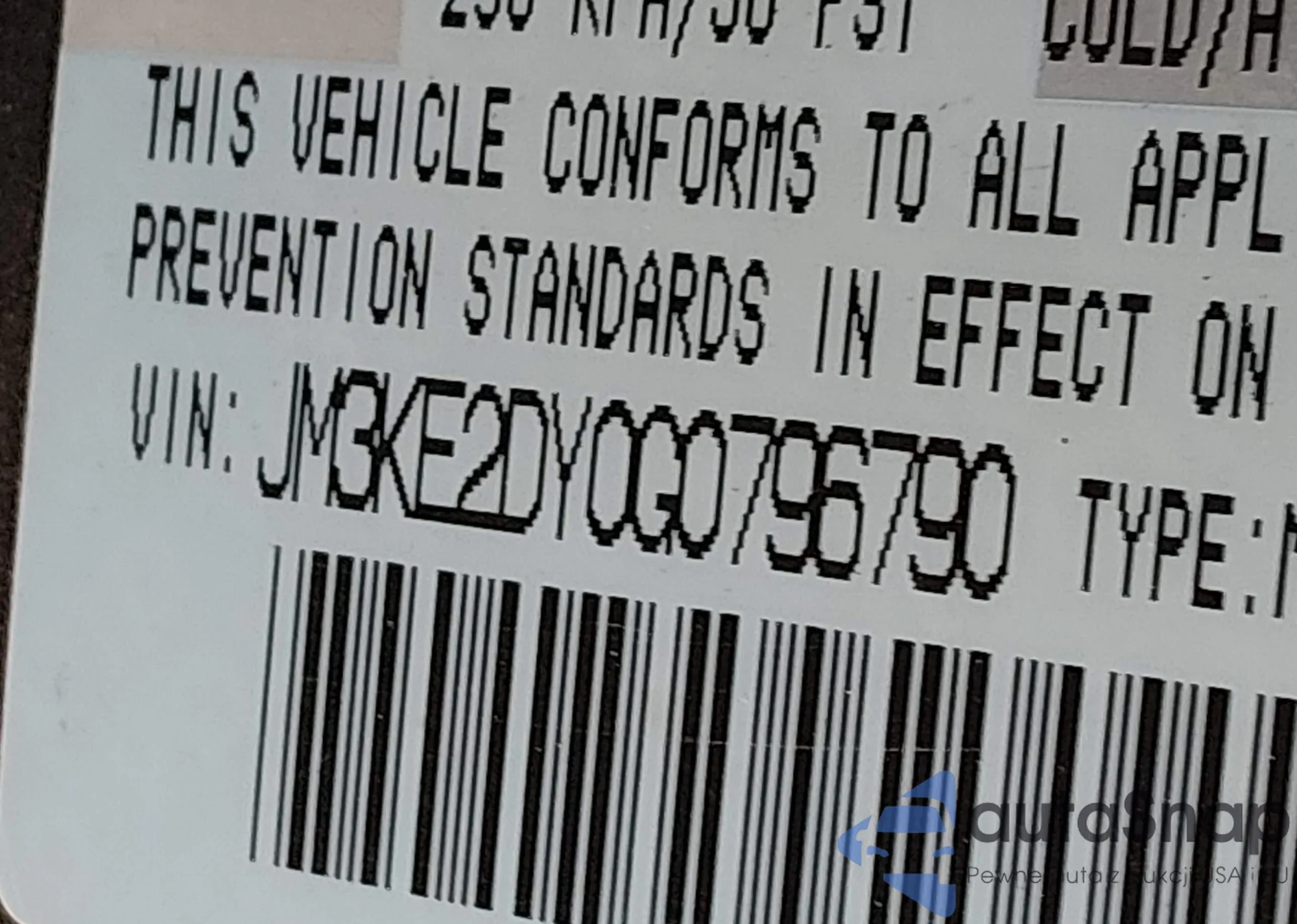 • VIN: JM3KE2DY0G0796790