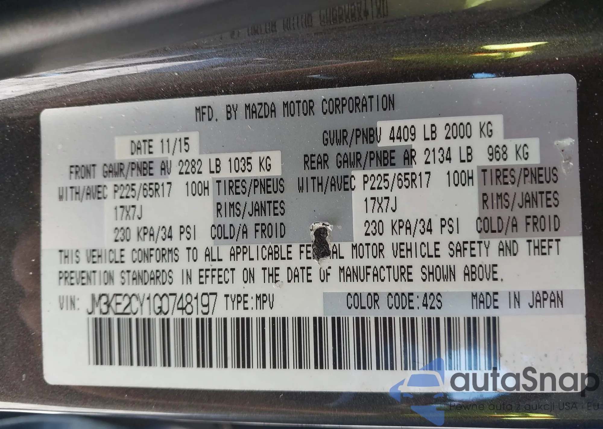 Samochód Mazda CX-5 2016 (VIN JM3KE2CY1G0748197) nie był wcześniej licytowany. Dokumenty są czyste, przebieg odpowiada lub jest niższy niż średnia rynku. Sprzedaje go firma ubezpieczeniowa – polecamy zakup. Dostawa do portu zajmie ok. 6–8 tygodni.