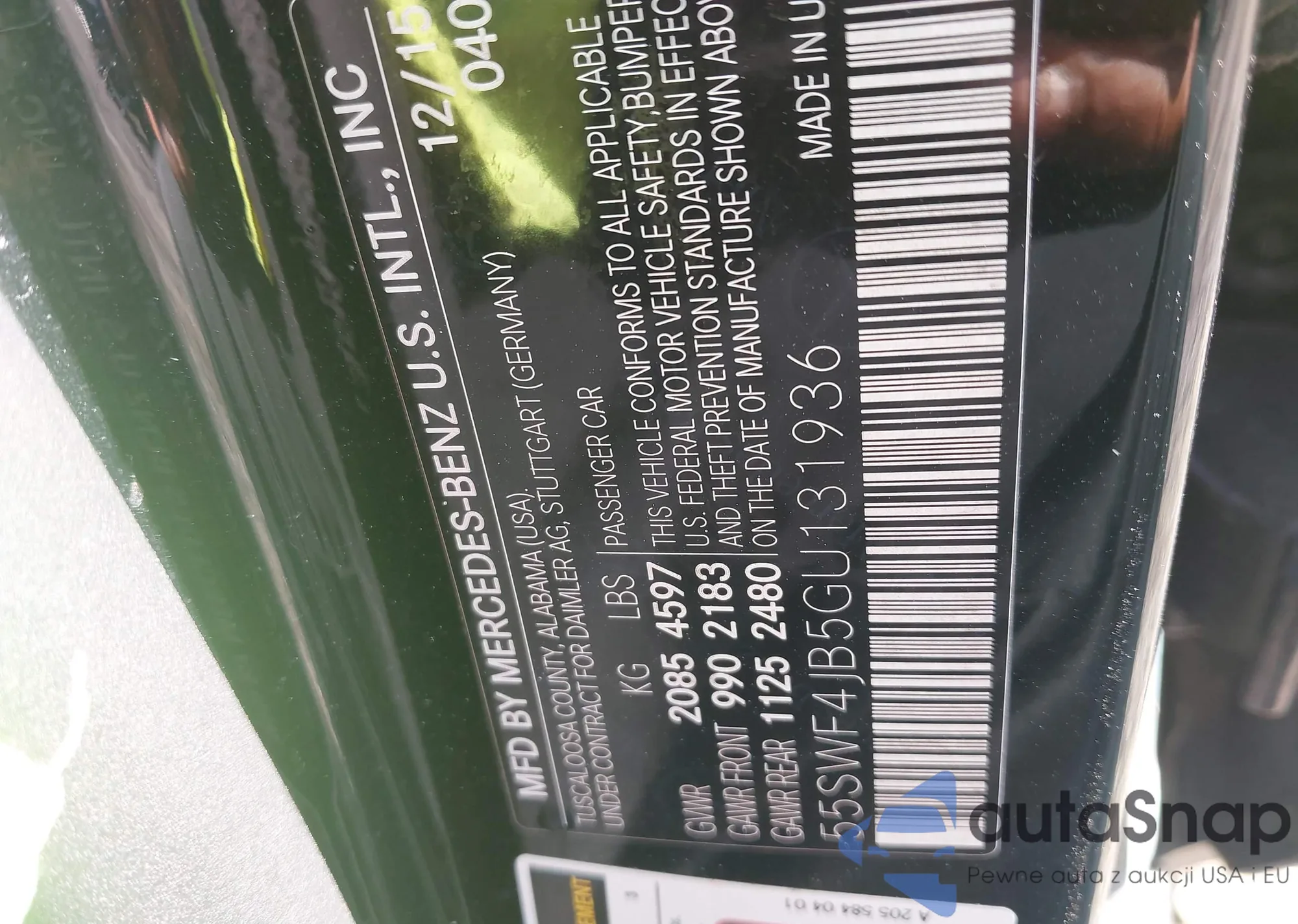 Samochód Mercedes-Benz C-klasse 2016 (VIN 55SWF4JB5GU131936) nie był wcześniej licytowany. Dokumenty są czyste, przebieg odpowiada lub jest niższy niż średnia rynku. Sprzedaje go firma ubezpieczeniowa – polecamy zakup. Dostawa do portu zajmie ok. 6–8 tygodni.