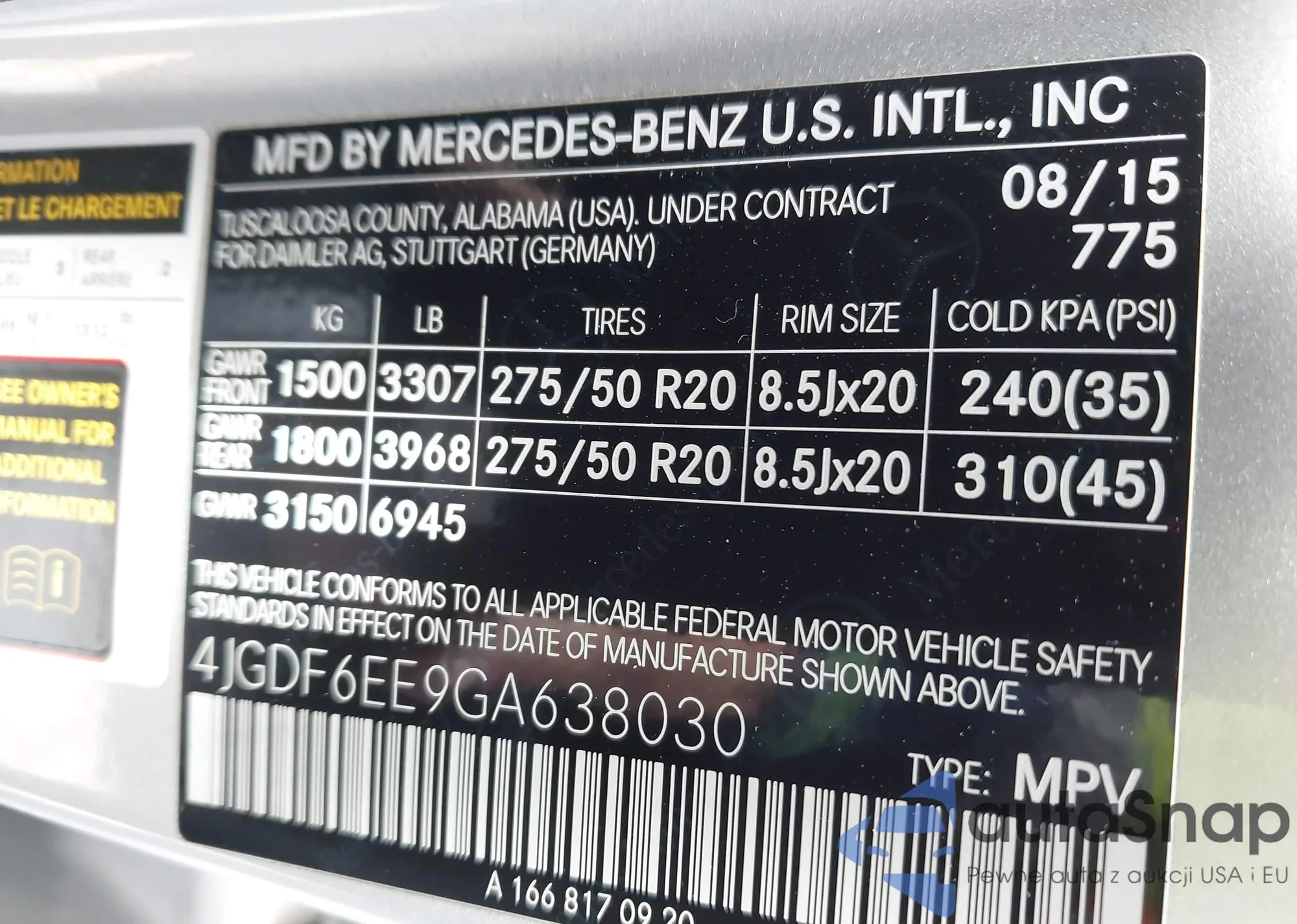 • VIN: 4JGDF6EE9GA638030