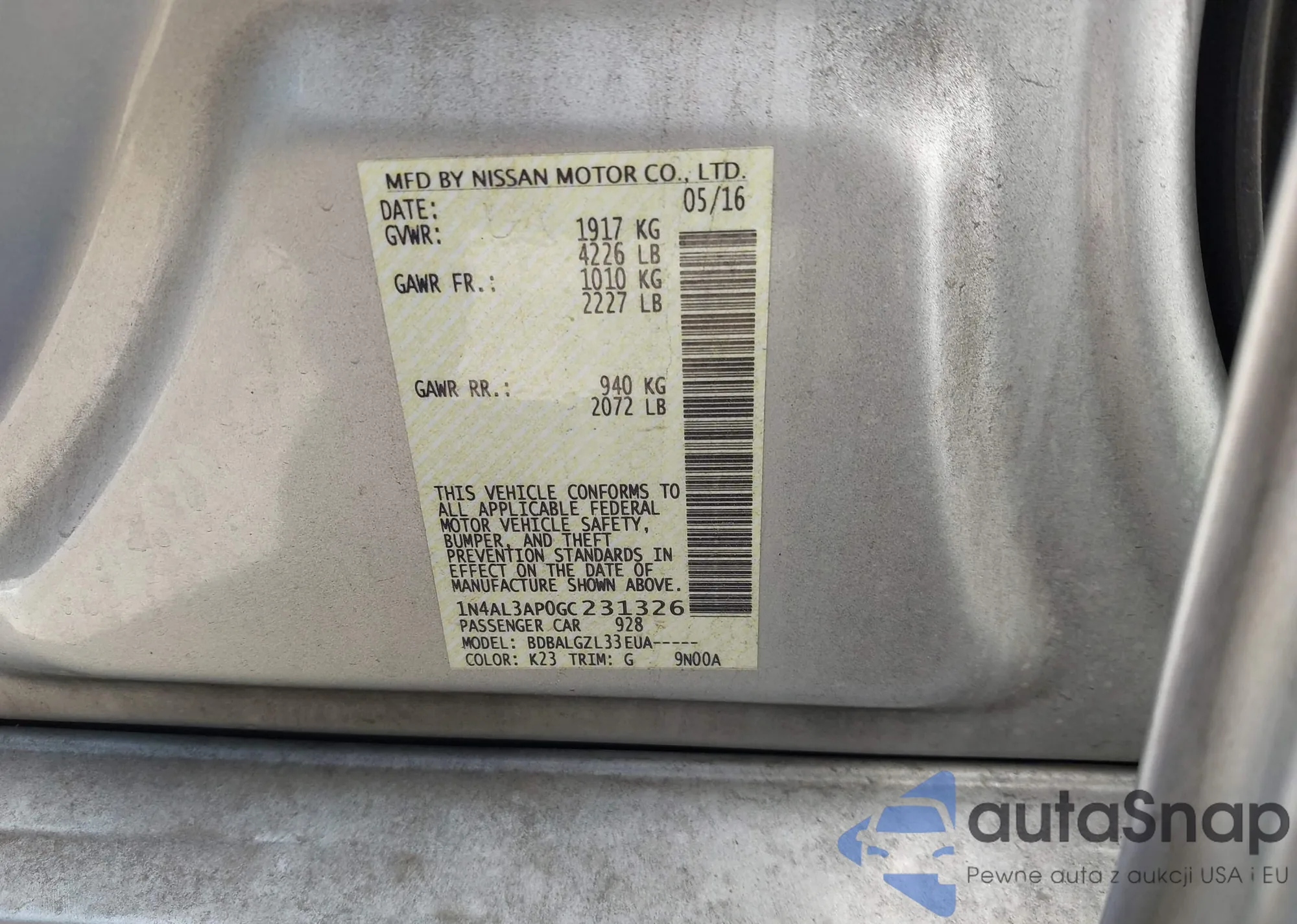 VIN: 1N4AL3AP0GC231326