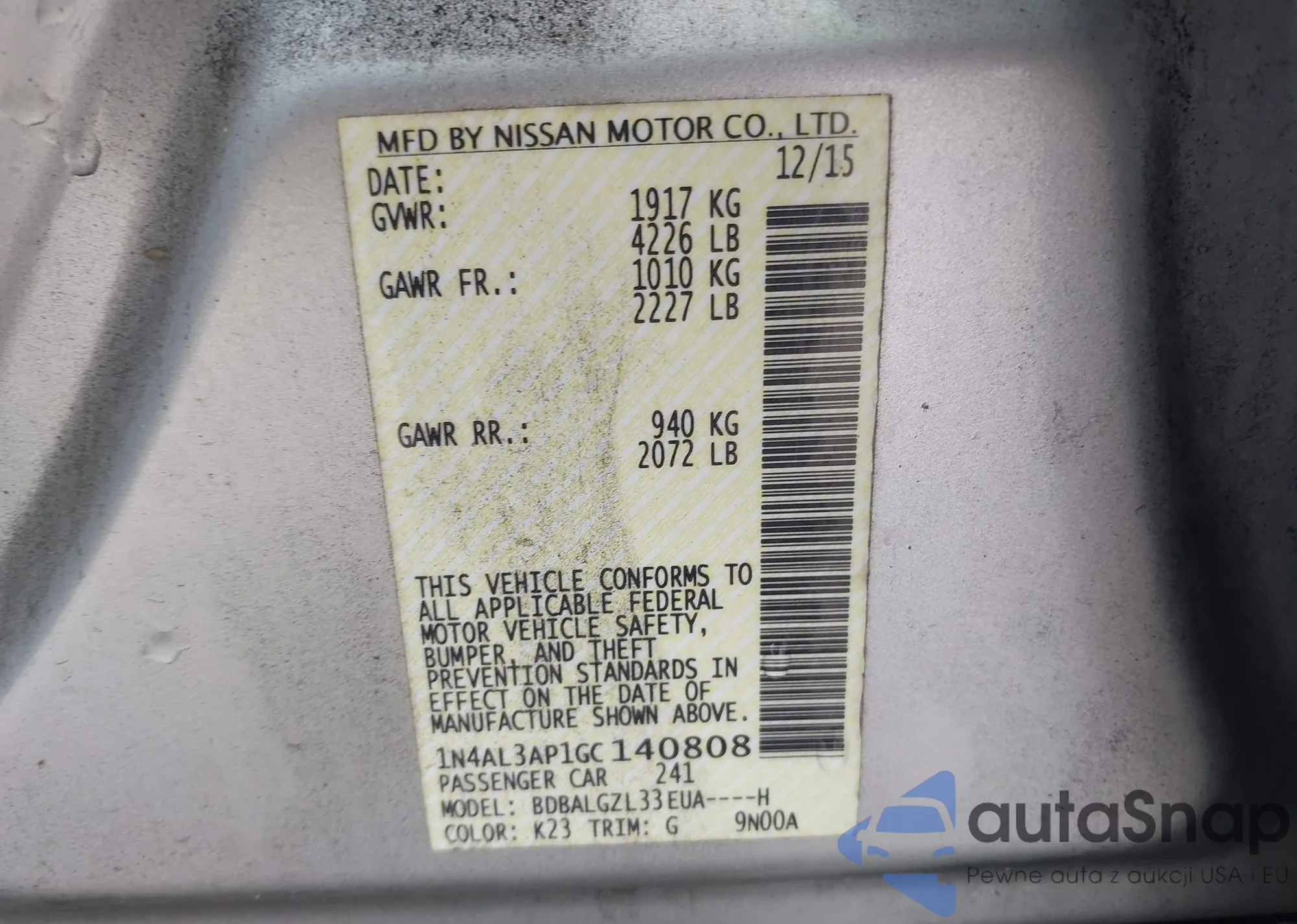 VIN: 1N4AL3AP1GC140808